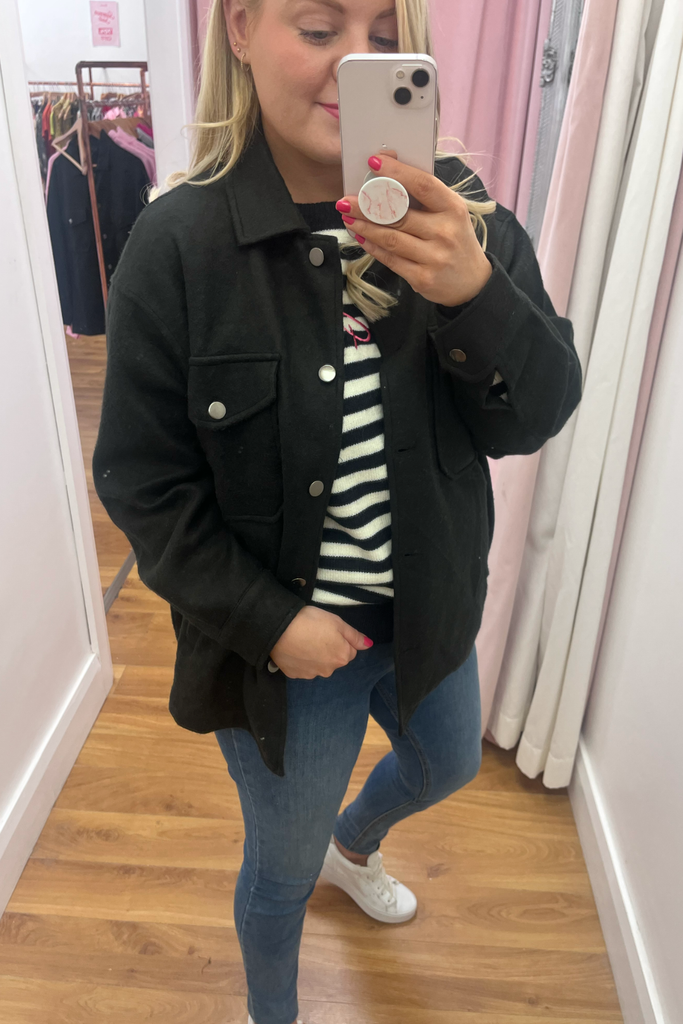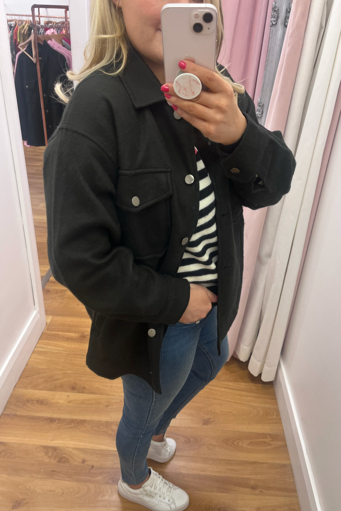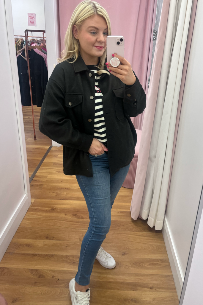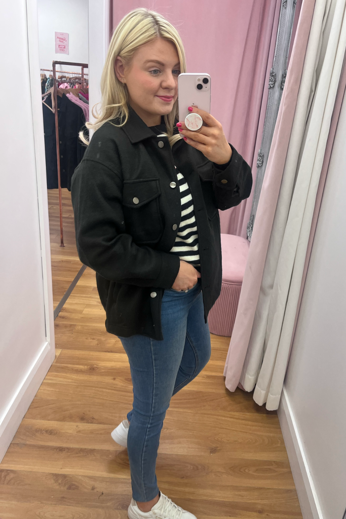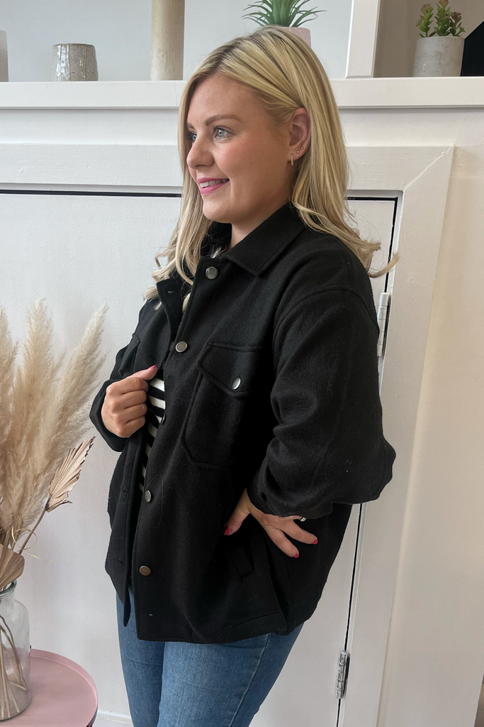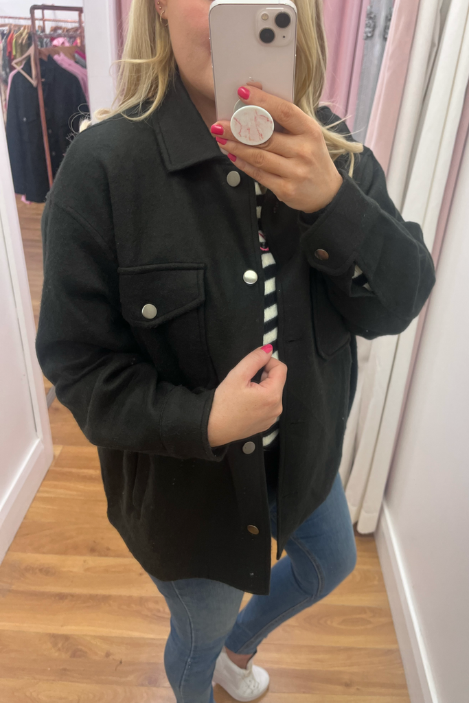 Super soft feel shirt/jacket with breast pockets and button-down front and cuffs. The perfect neutral layer over for everyday!