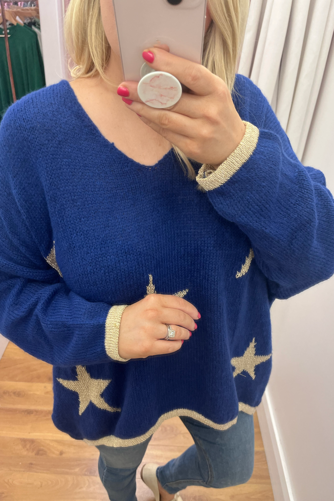 Star V-neck Jumper (Royal Blue)