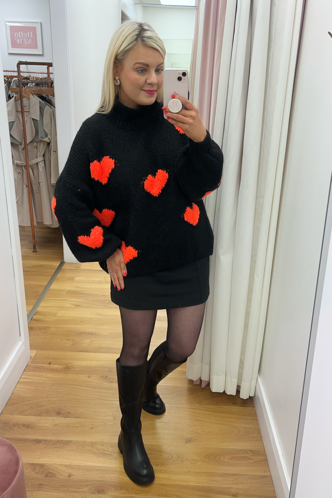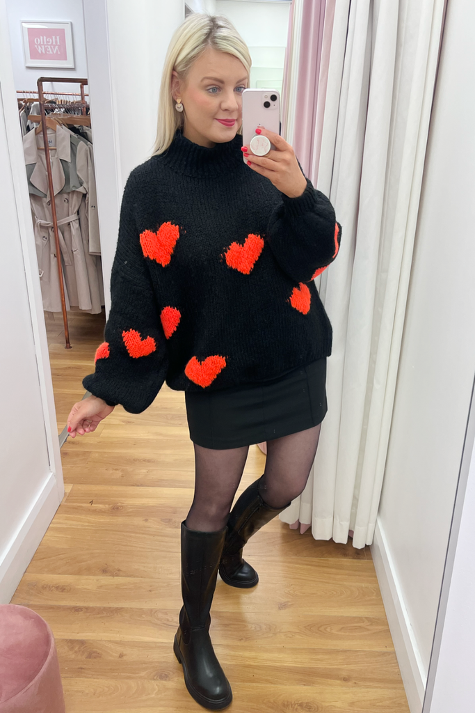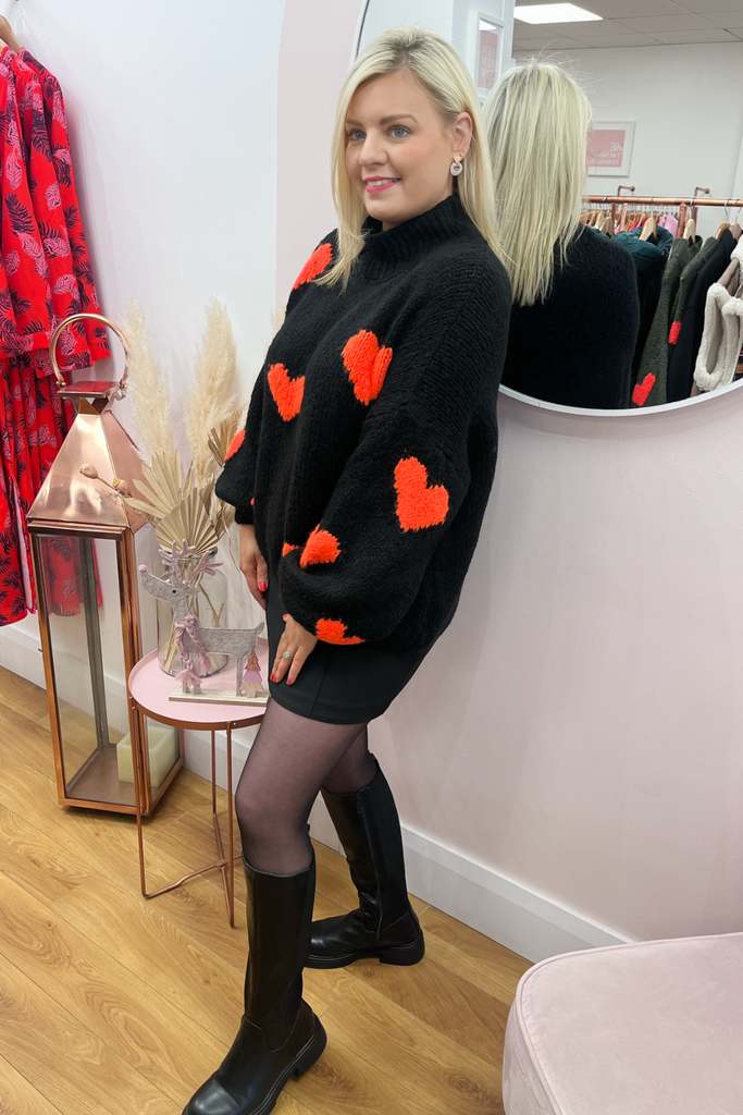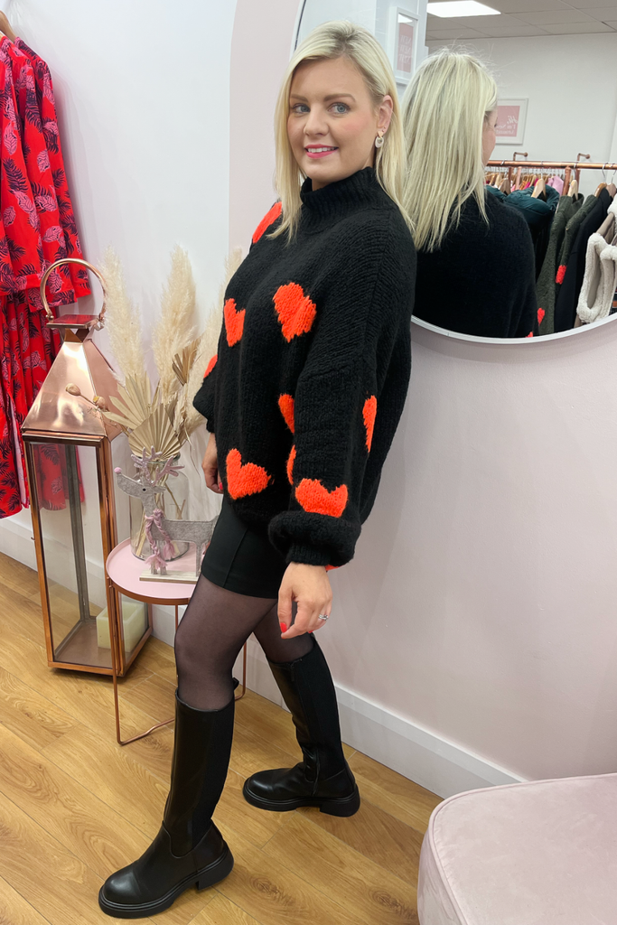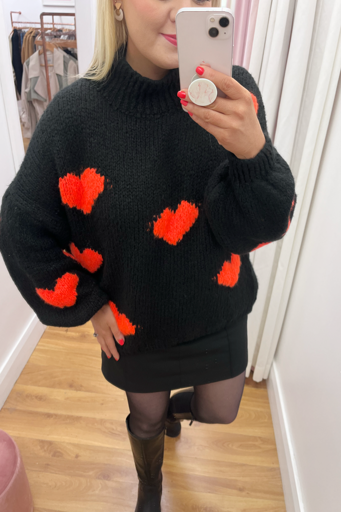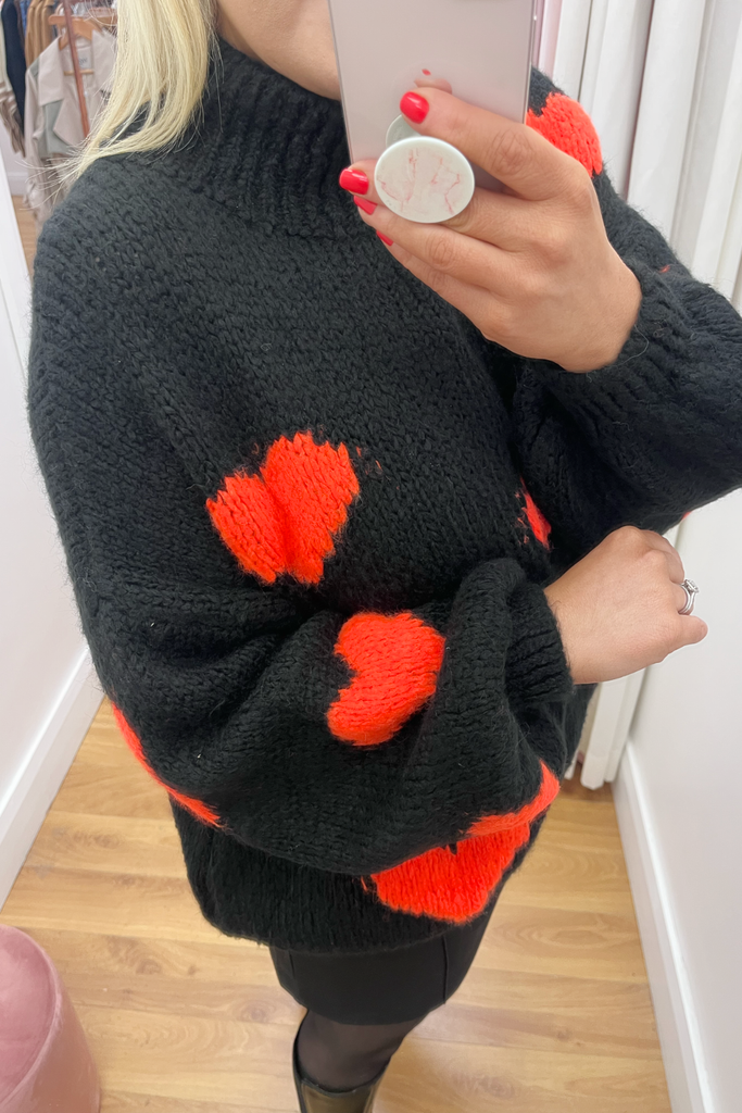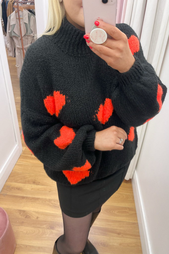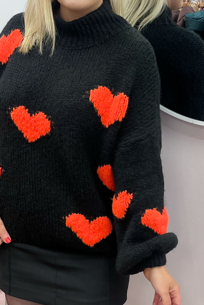 Chunky vibrant heart print jumper with ballon sleeve and fitted cuff