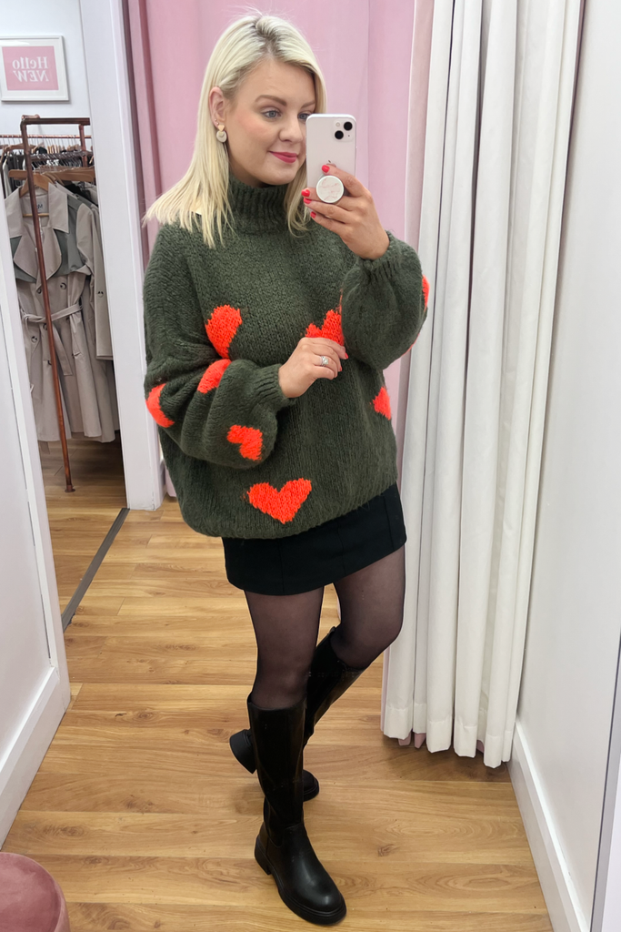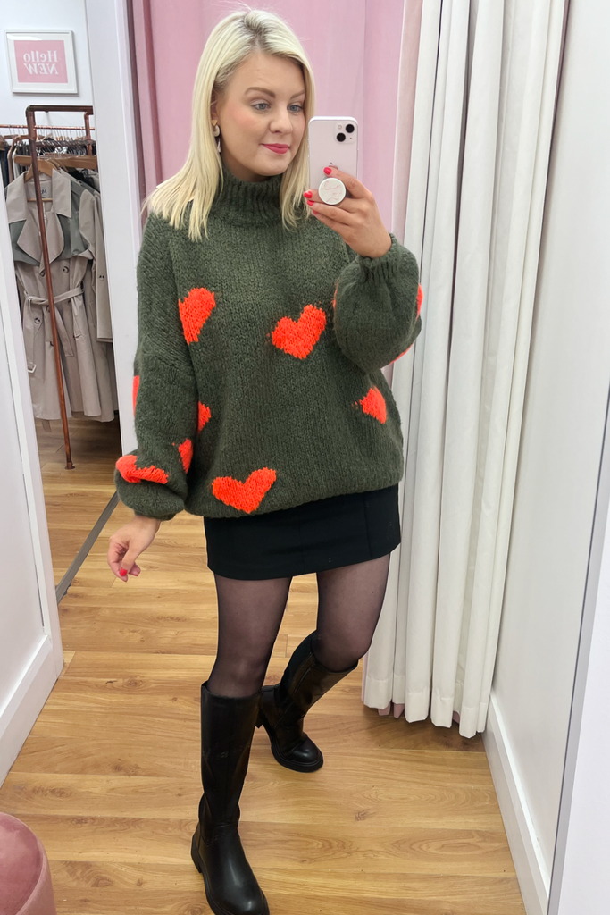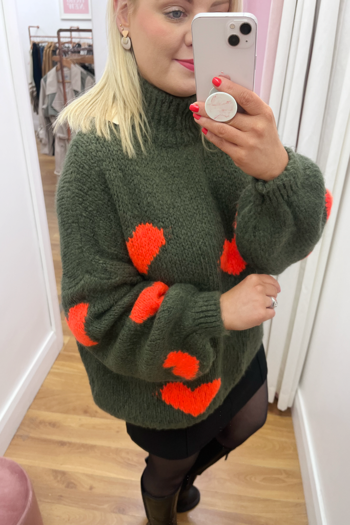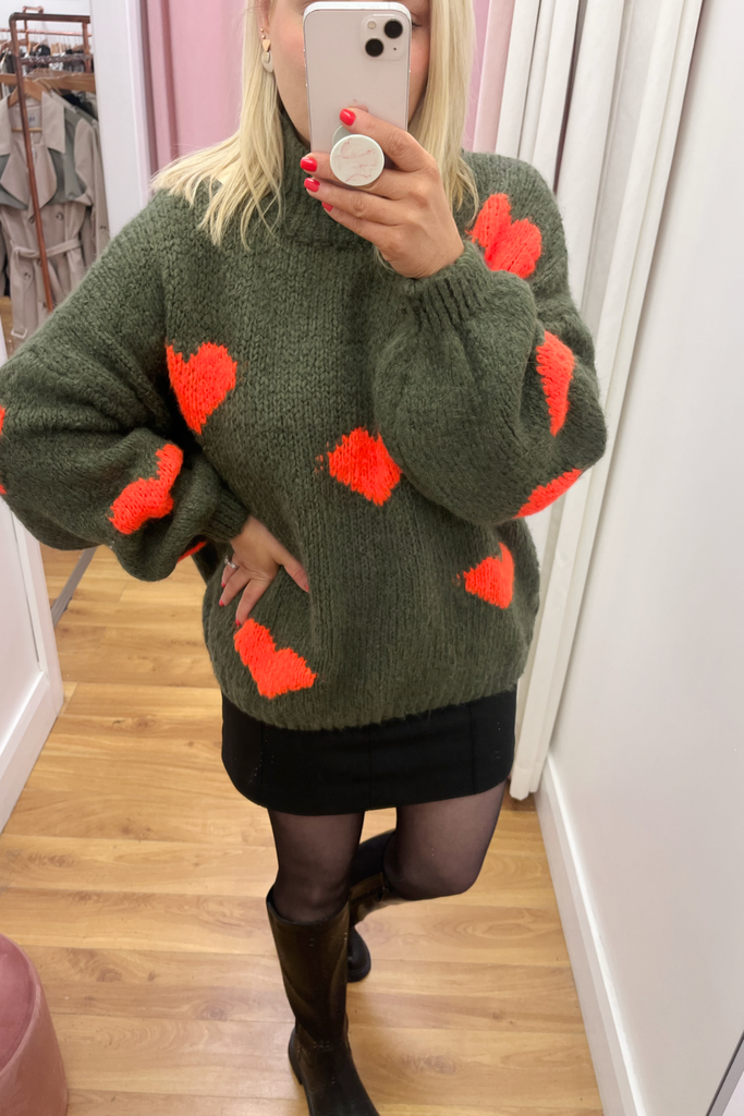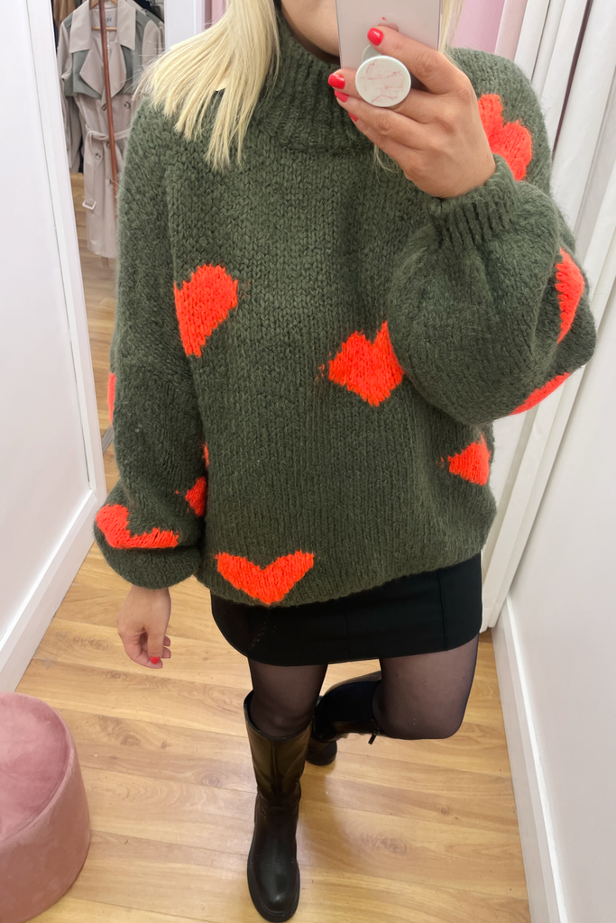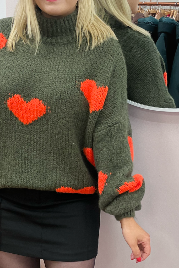 Abby Khaki Heart Jumper