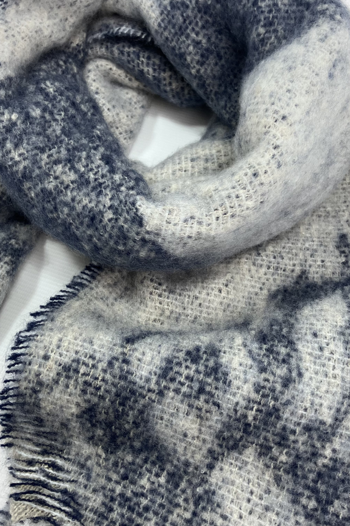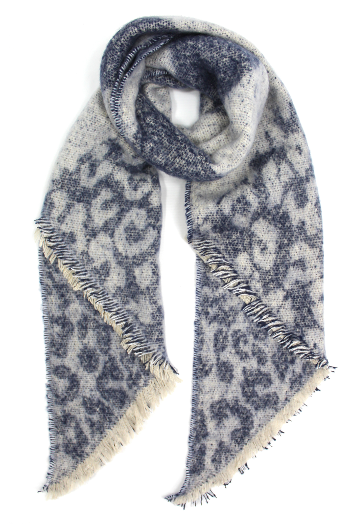 This incredibly soft and cozy blanket scarf is artfully designed with an abstract coloured animal print with asymmetrical hem