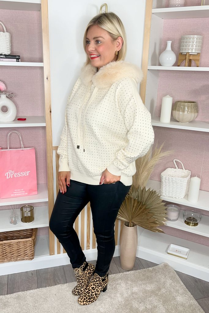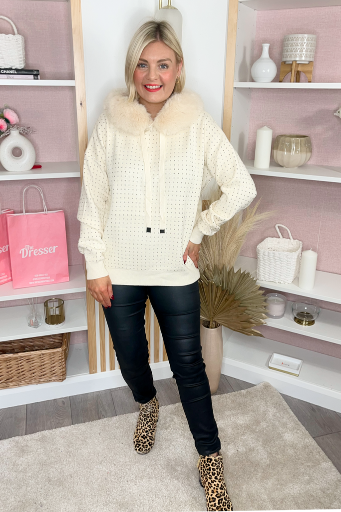 Addy Faux Fur Hooded Jumper (Cream)