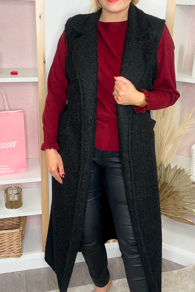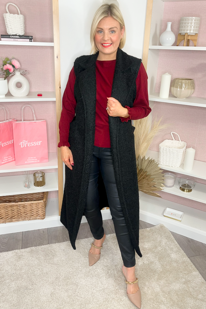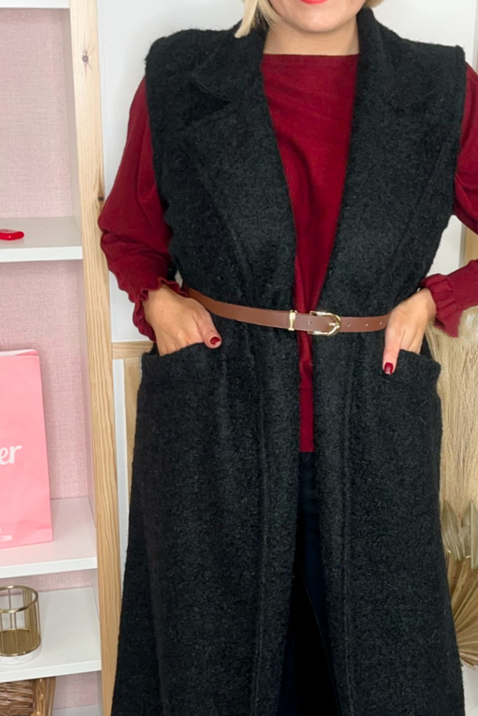 Woollen look longline sleeveless waistcoat with belt