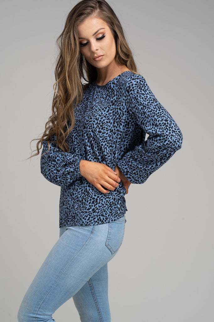 Blue Leopard Print Blouse