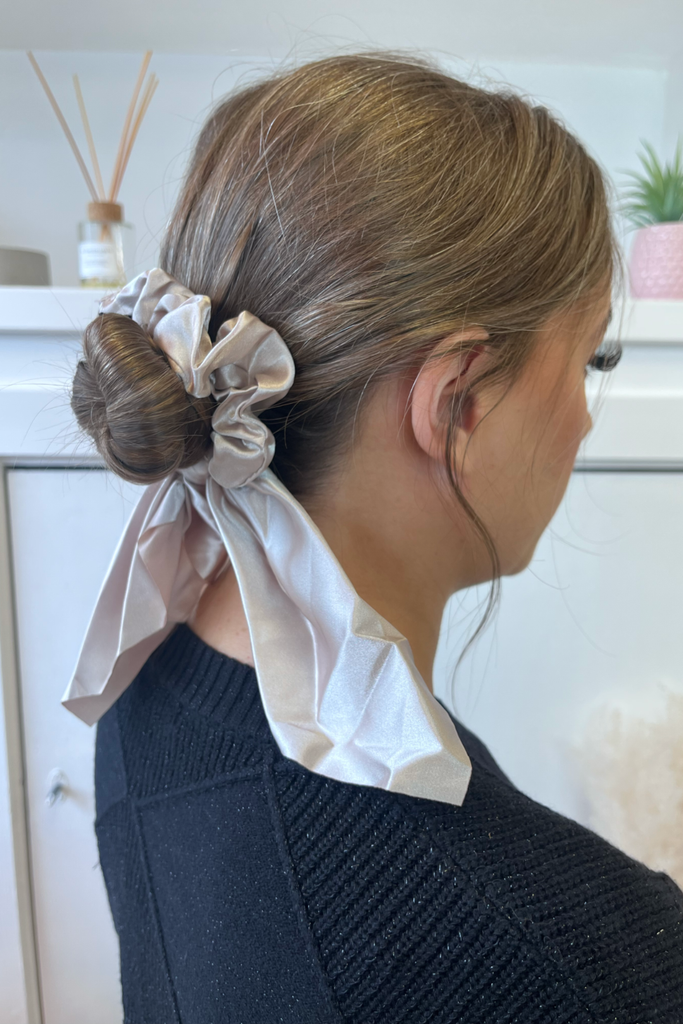 Blush Glossy Tailed Hair Scrunchie