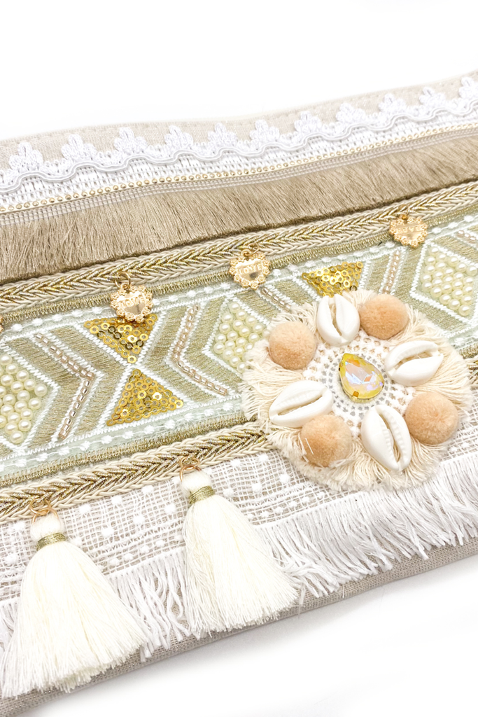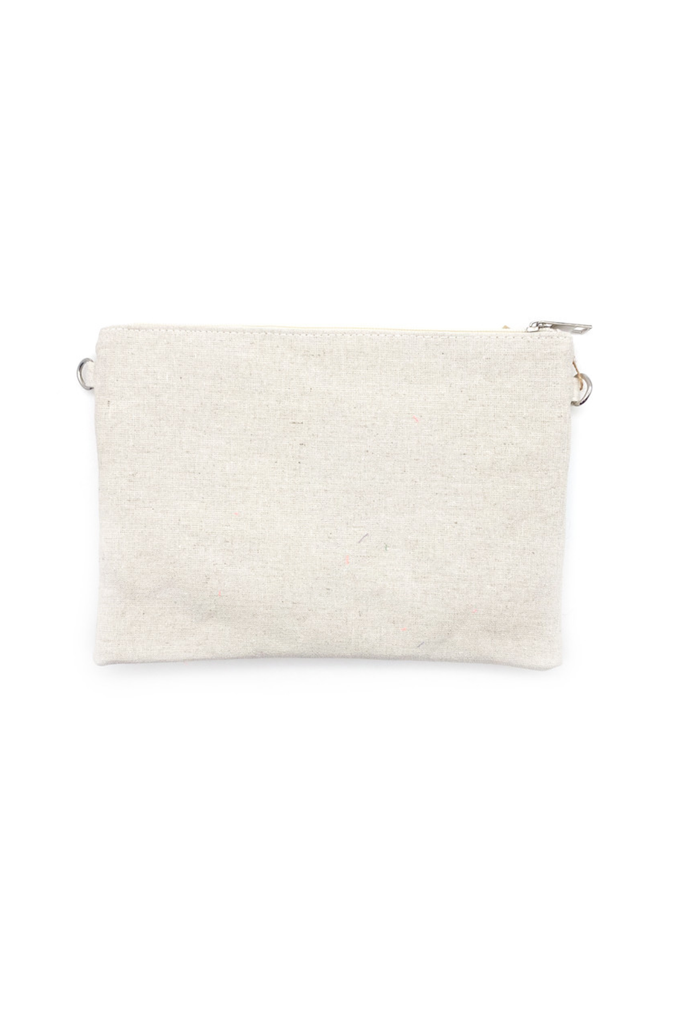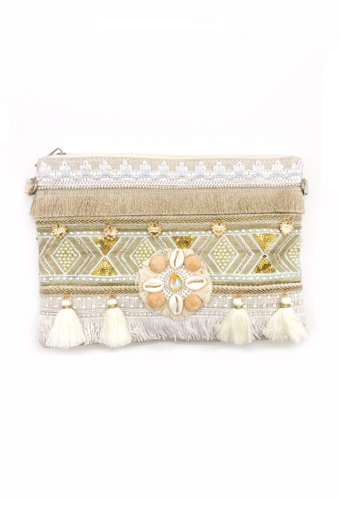 Canvas Clutch Bag with Zip Fastening, and detachable shoulder strap. With shell, Tassel and & Sequin Pattern