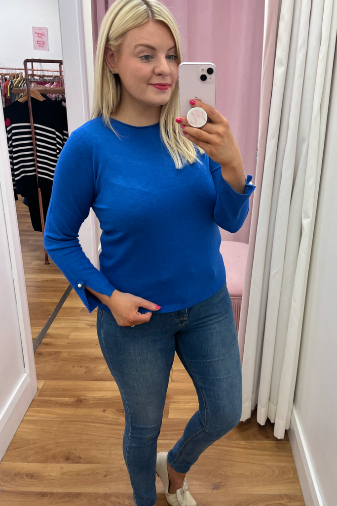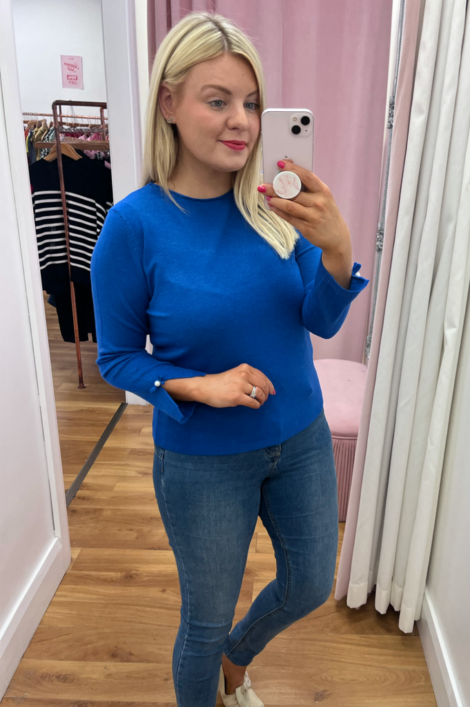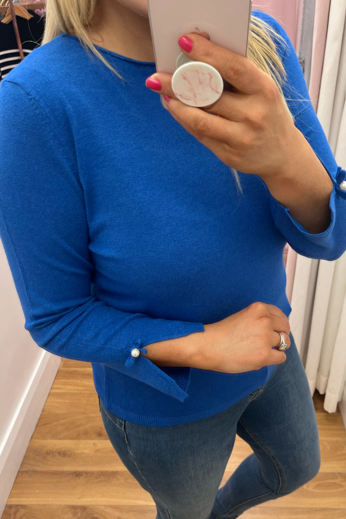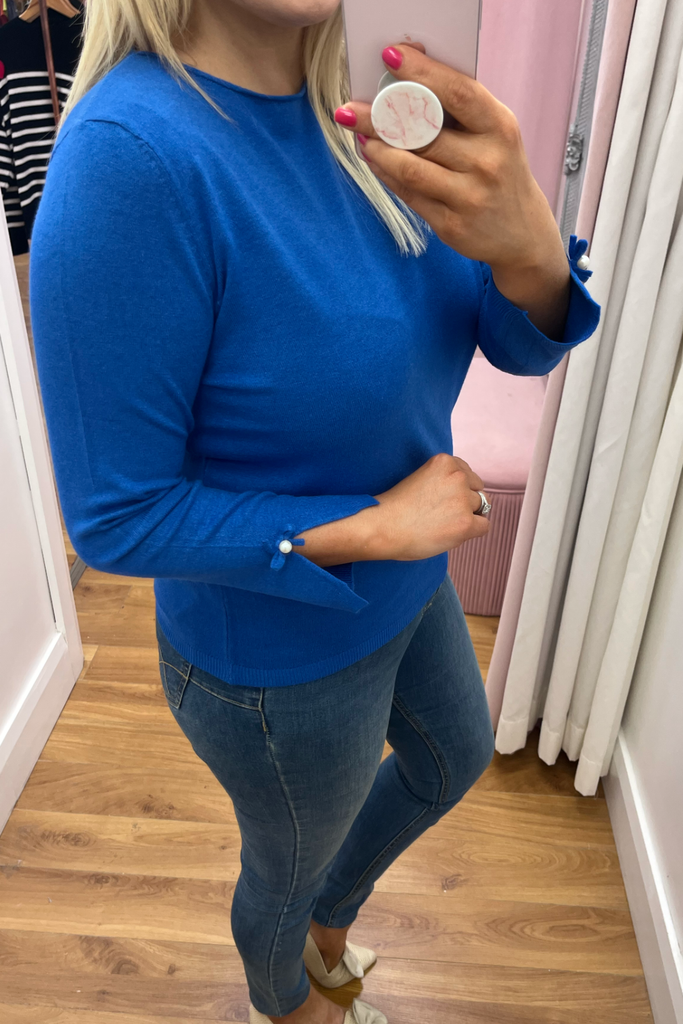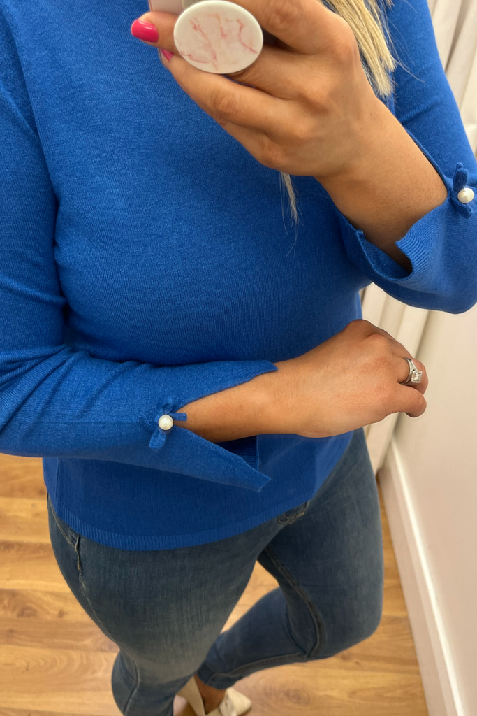 Bow & Pearl Cuff Jumper (Royal Blue)