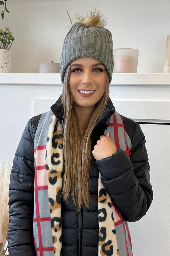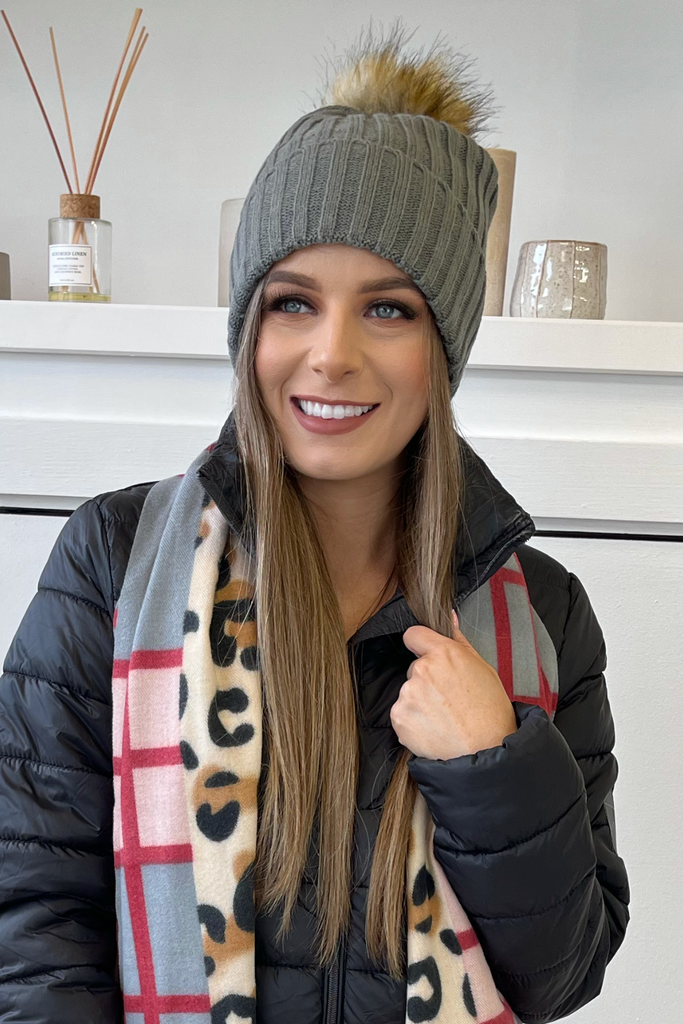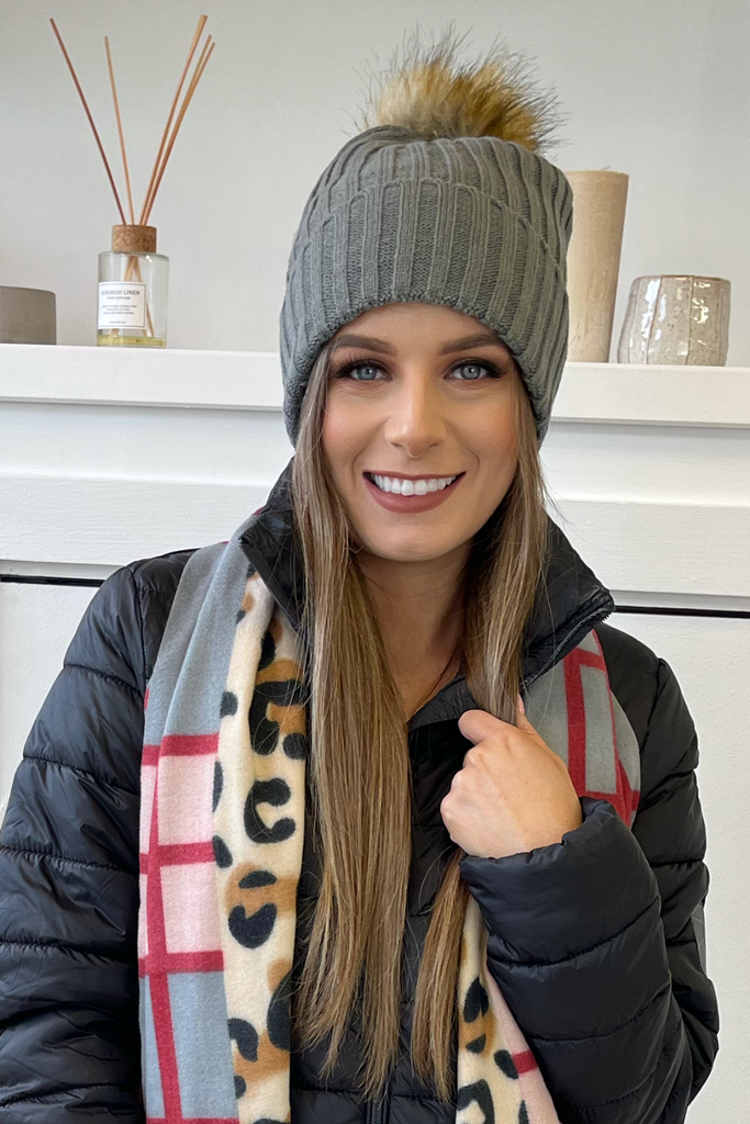 Ribbed bobble hat with turned up front, finished with a faux fur bobble. The perfect accessory to every outfit this Winter!