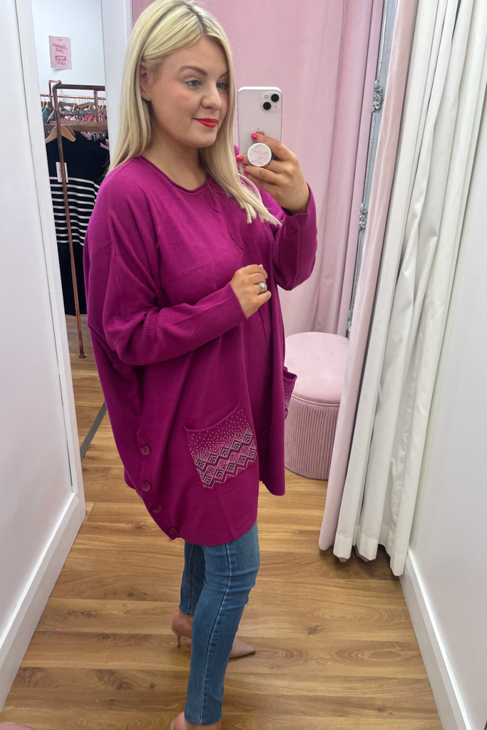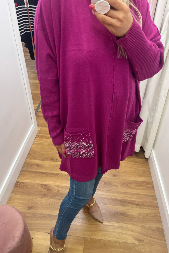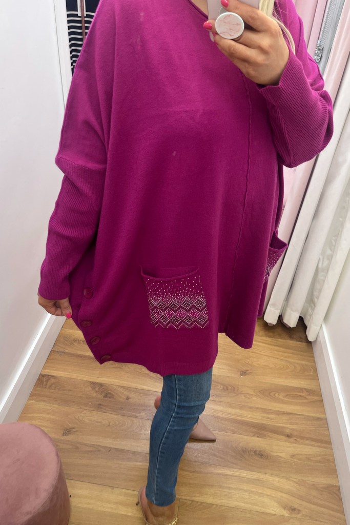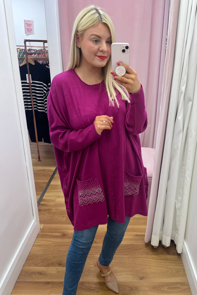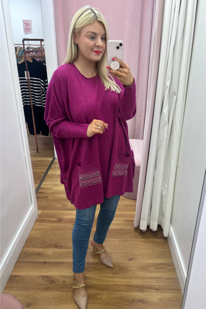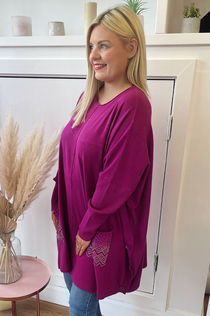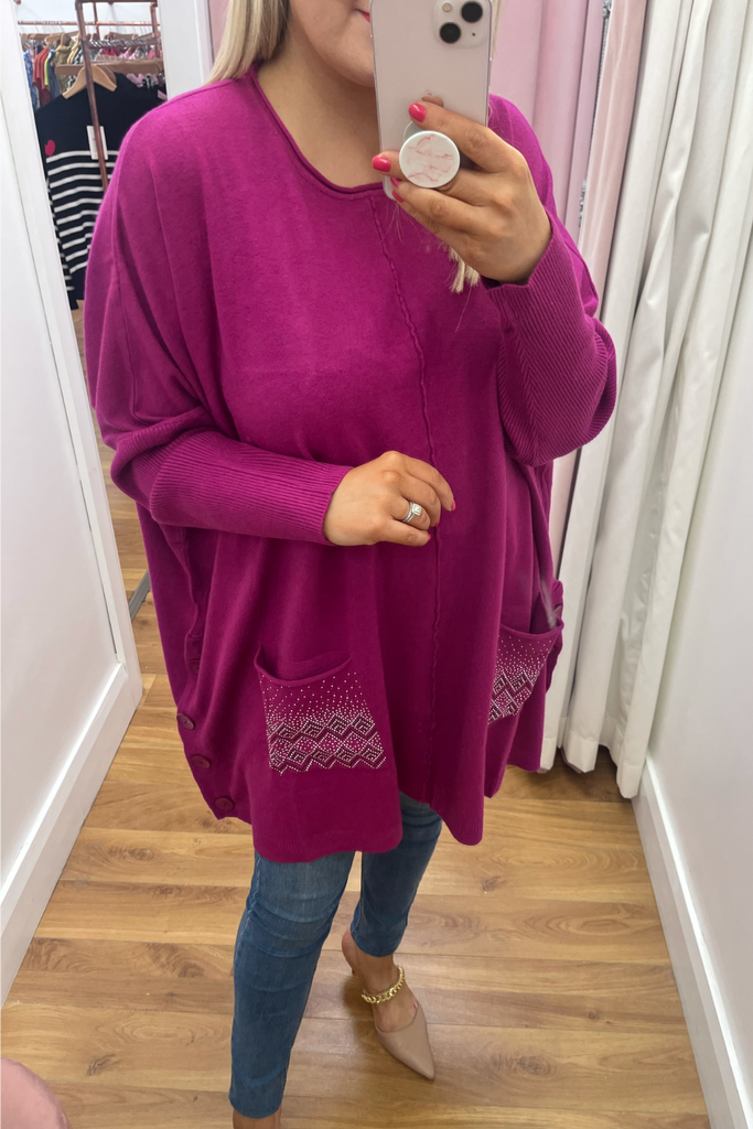 Embellished Cape Jumper (Raspberry)