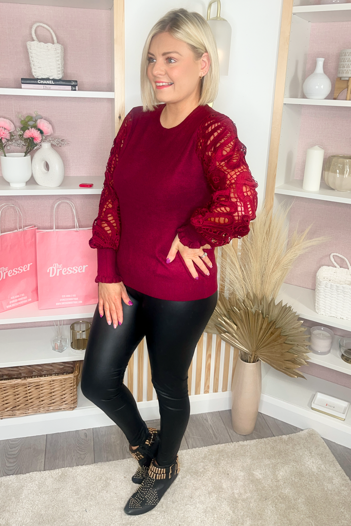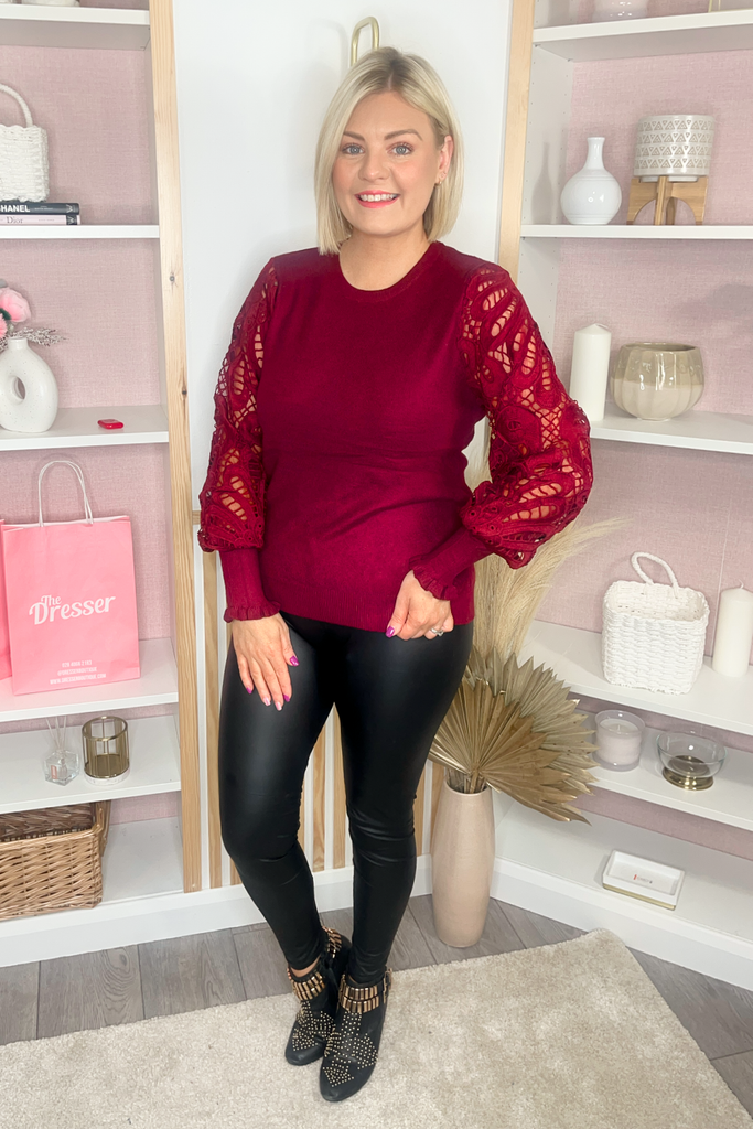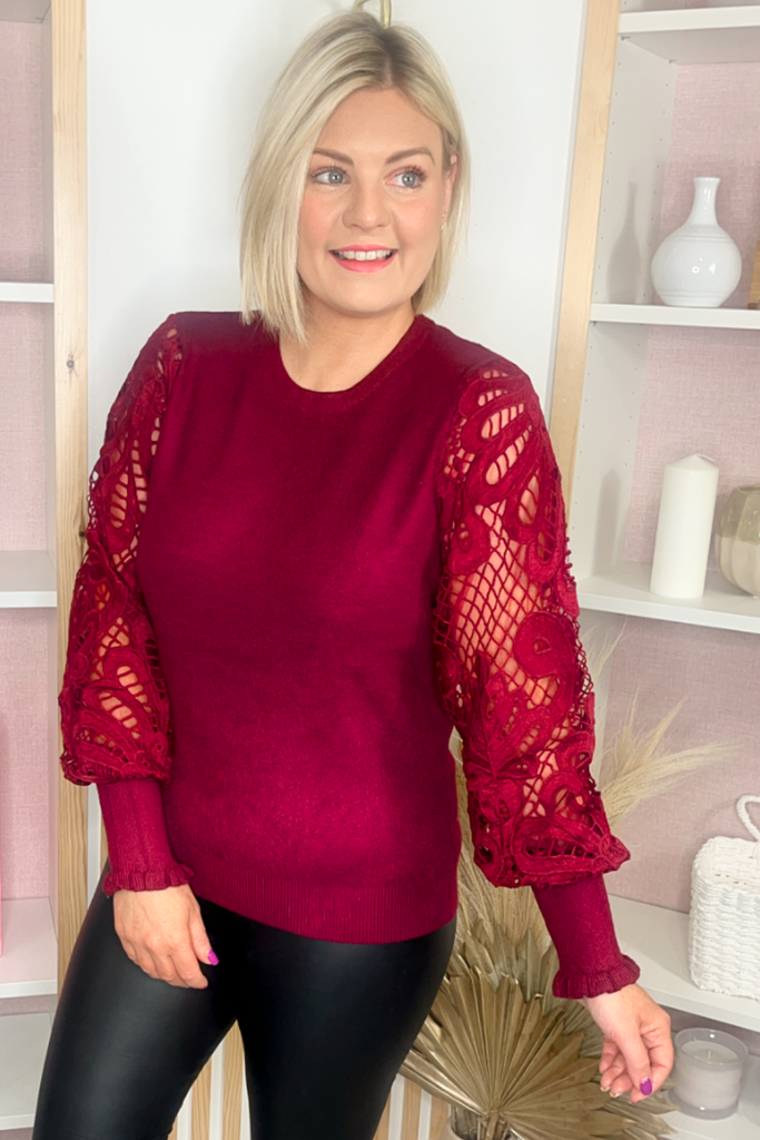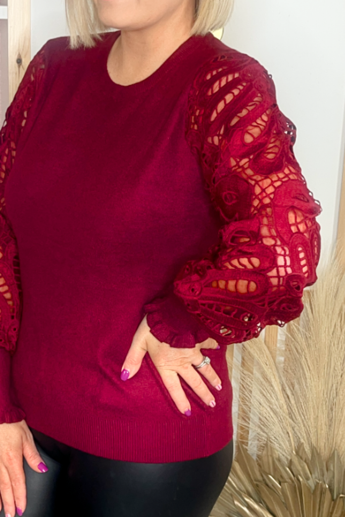 Crochet Sleeve Jumper (Burgundy)
