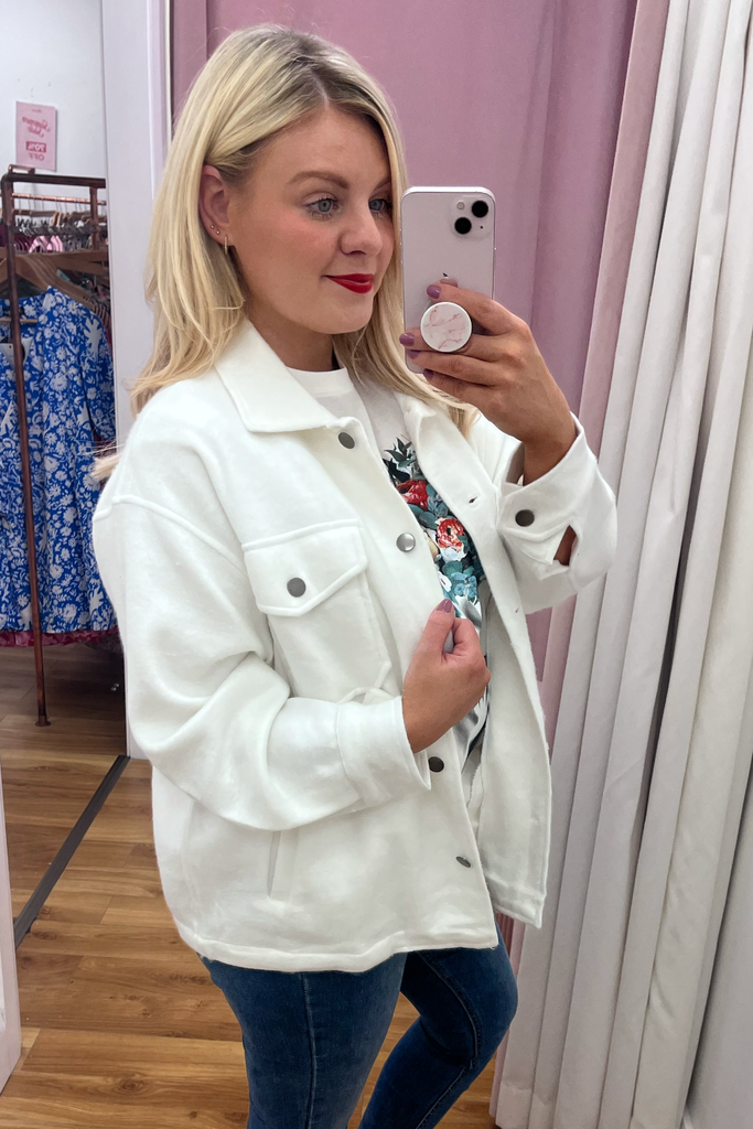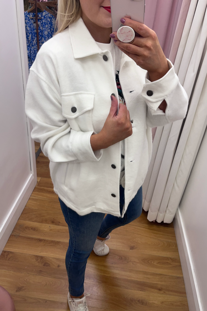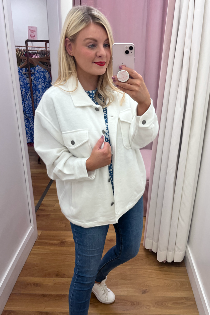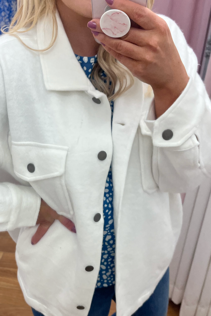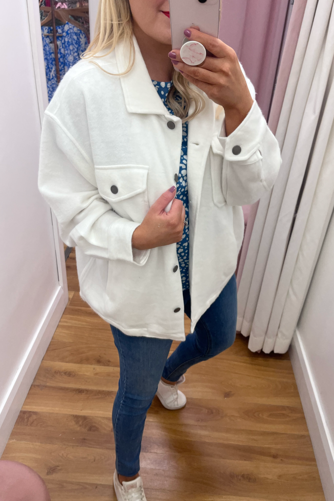 Super soft feel shirt/jacket with breast pockets and button-down front and cuffs. The perfect neutral layer over for everyday!