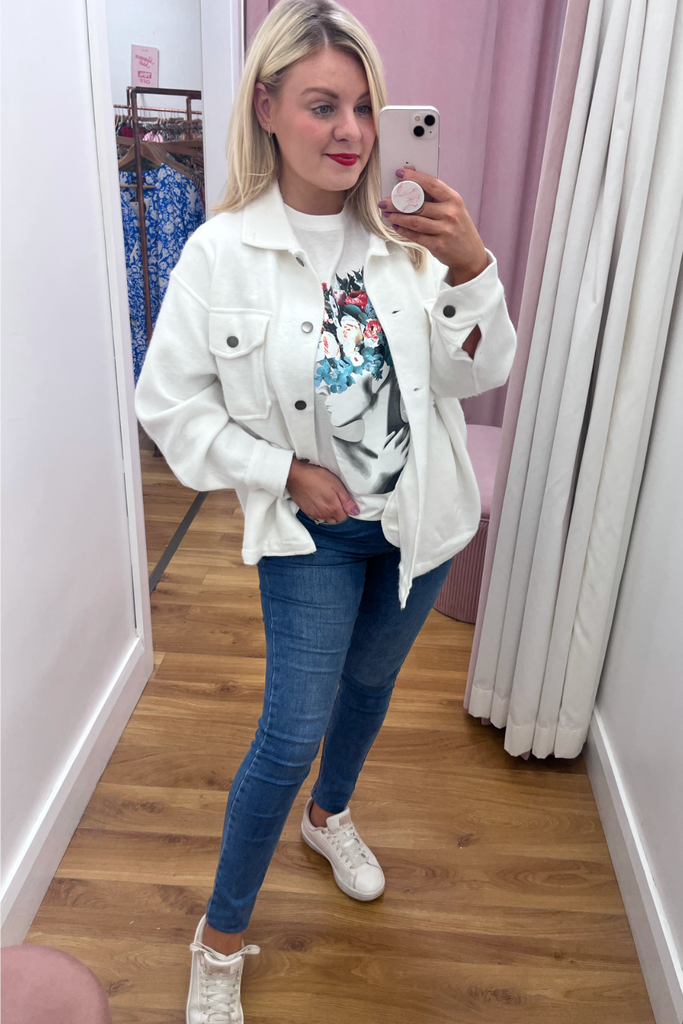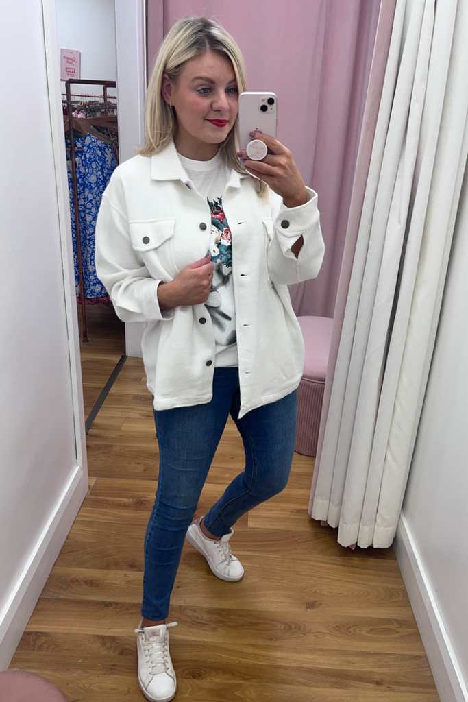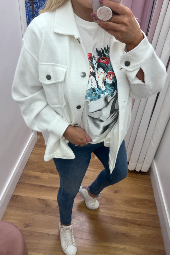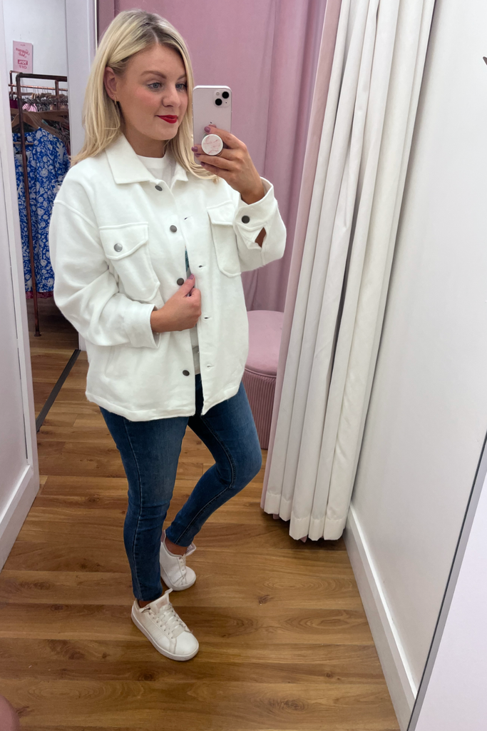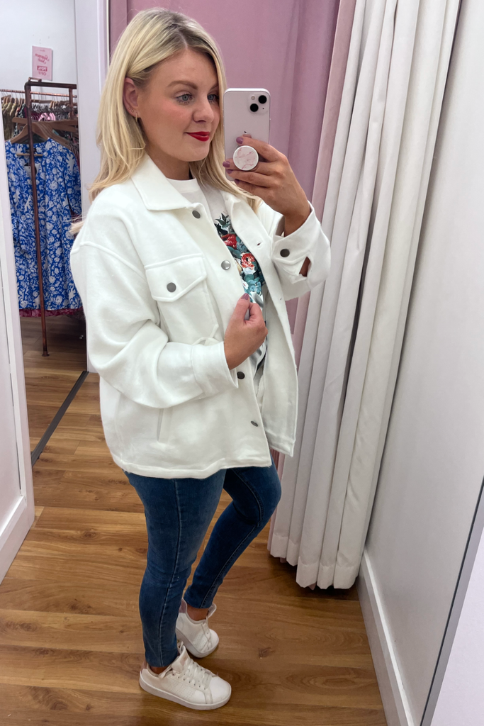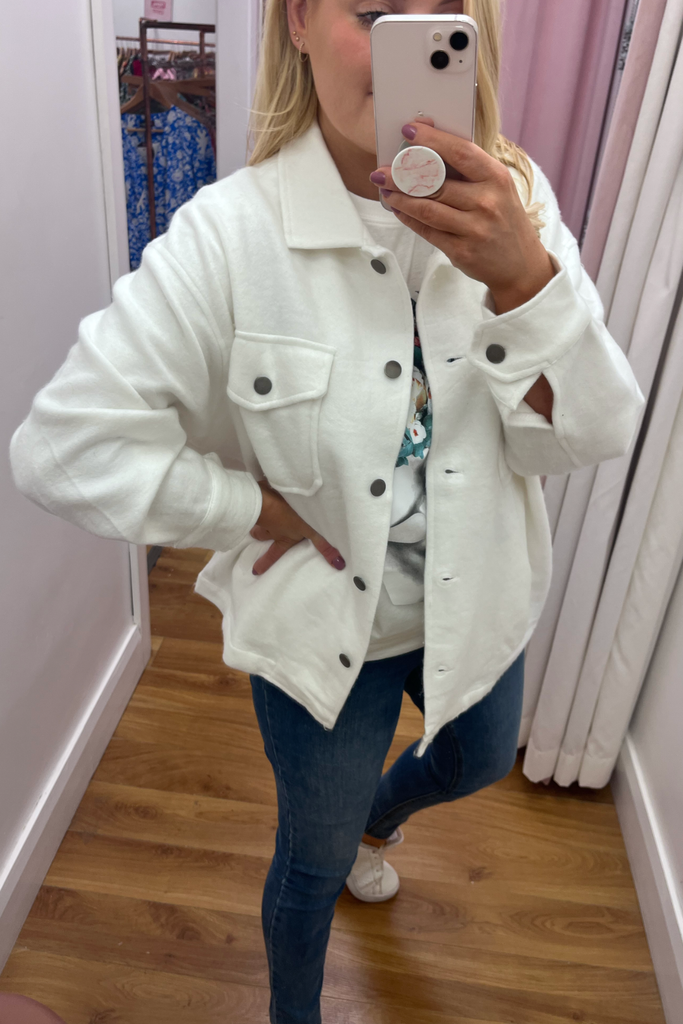 Super soft feel shirt/jacket with breast pockets and button-down front and cuffs. The perfect neutral layer over for everyday!