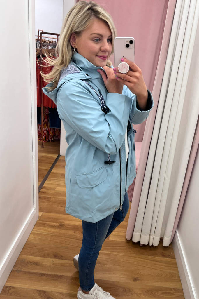 This beautiful rain mac is an Irish weather essential no matter the season! In a gorgeous blue/grey shade, it is a shower resistant PU coated style and is fully lined.