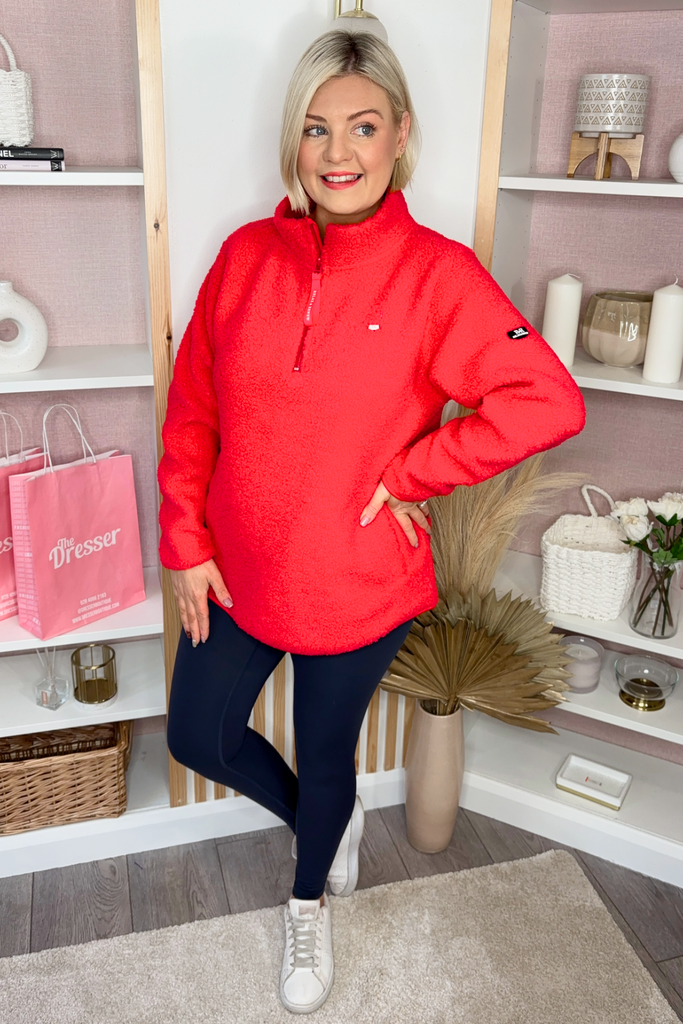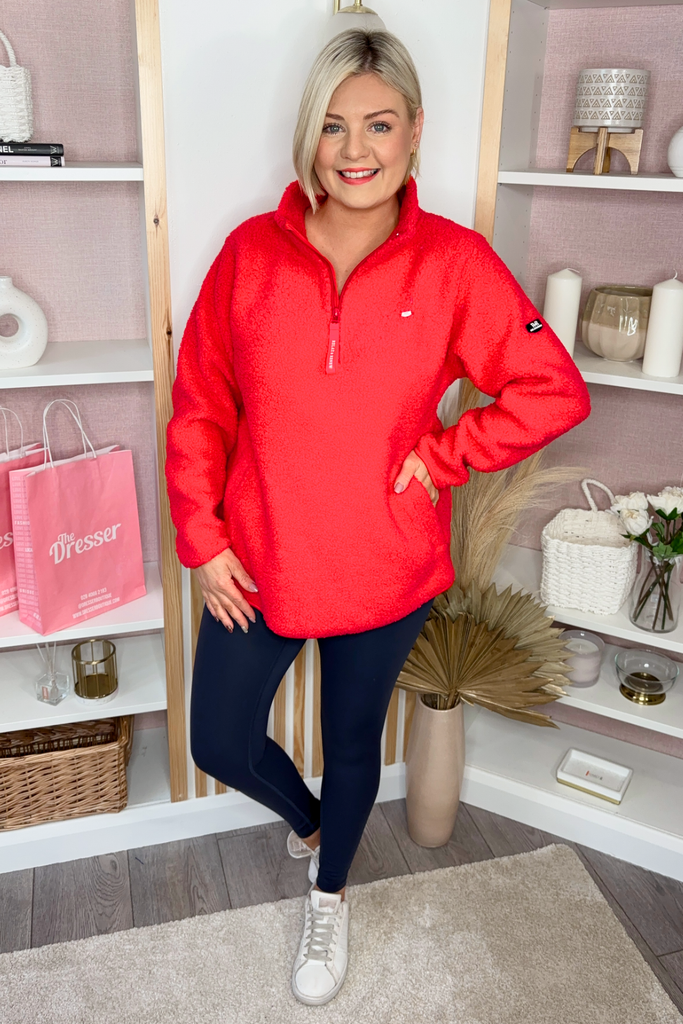 Half zip cosy fleece with two side pockets for added functionality. This pretty cosy jumper offers both warmth and style for a comfortable and fashionable outerwear option.