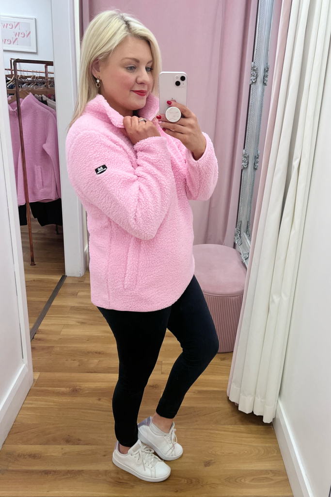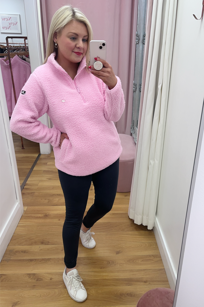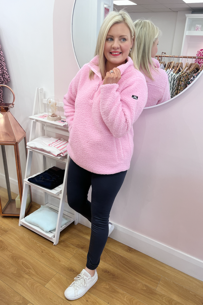 Half zip cosy fleece with two side pockets for added functionality. This pretty cosy jumper offers both warmth and style for a comfortable and fashionable outerwear option.