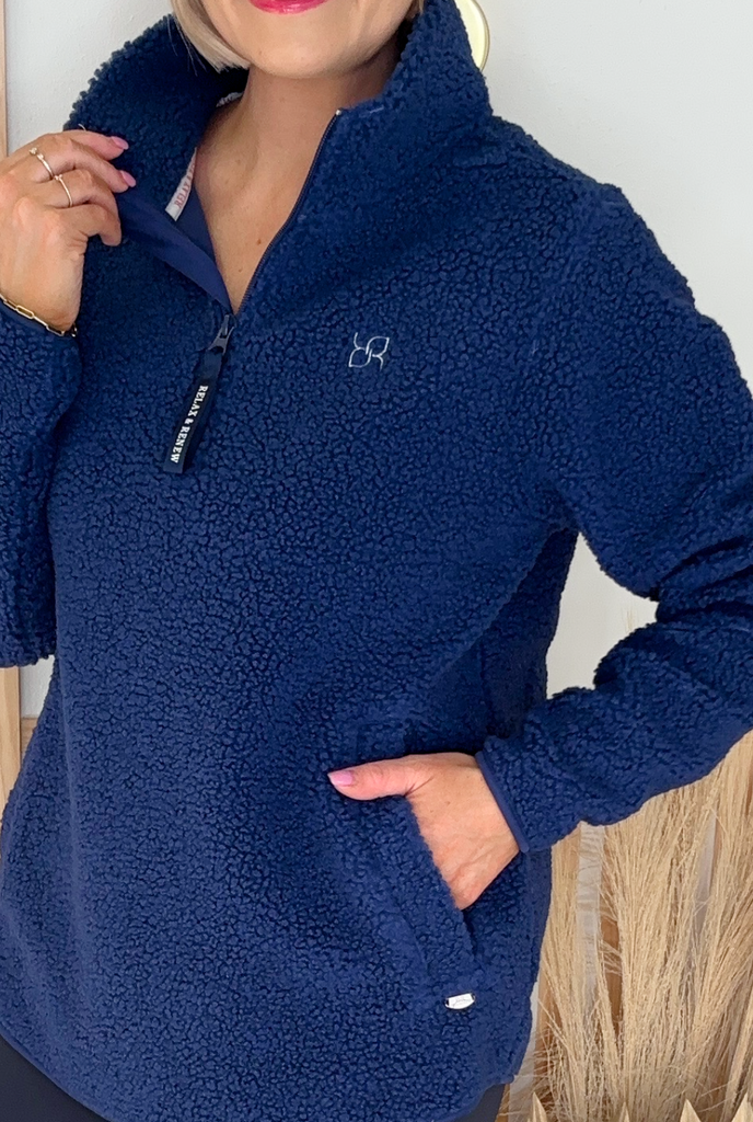 Half zip cosy fleece with two side pockets for added functionality. This pretty cosy jumper offers both warmth and style for a comfortable and fashionable outerwear option.