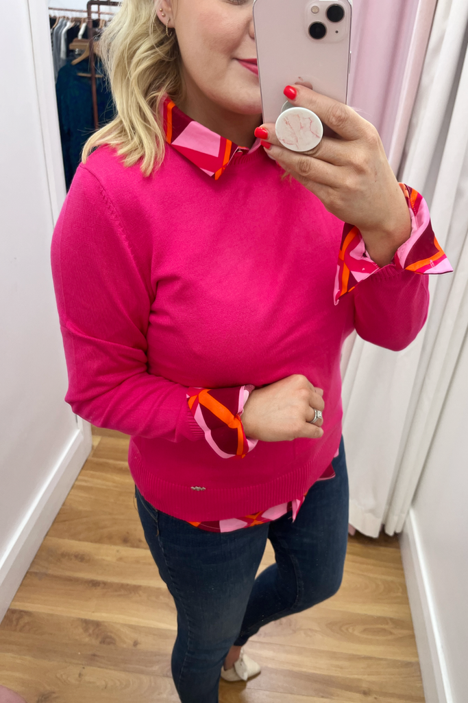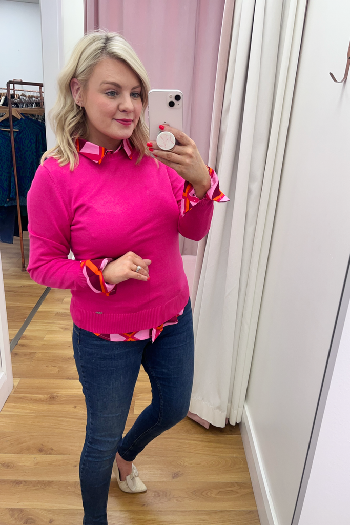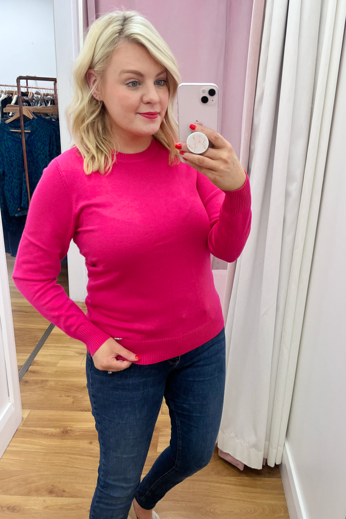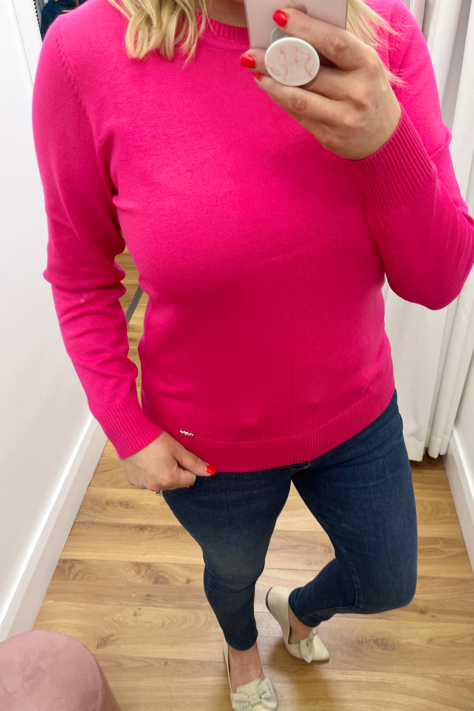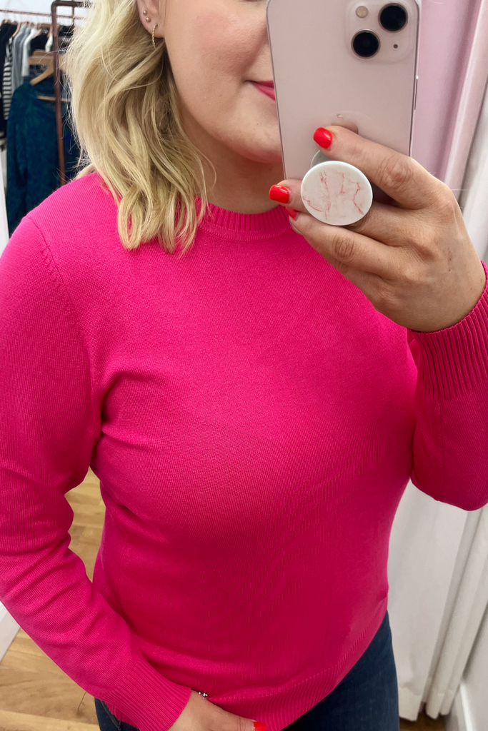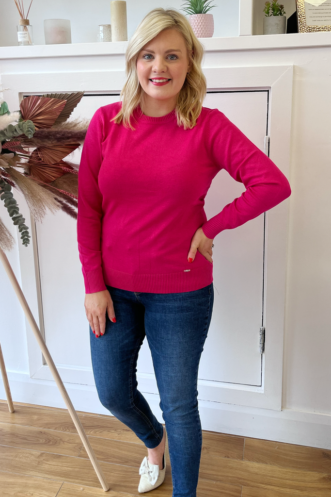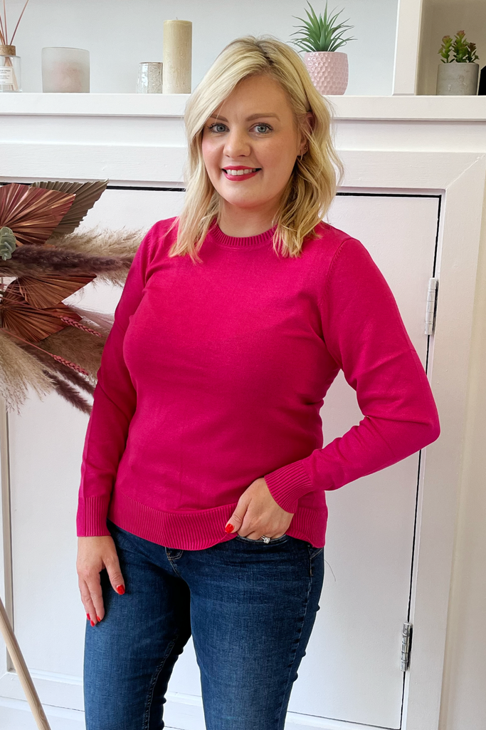 Light-weight jumper with ribbed round neckline, cuffs and hemline. Other colours available