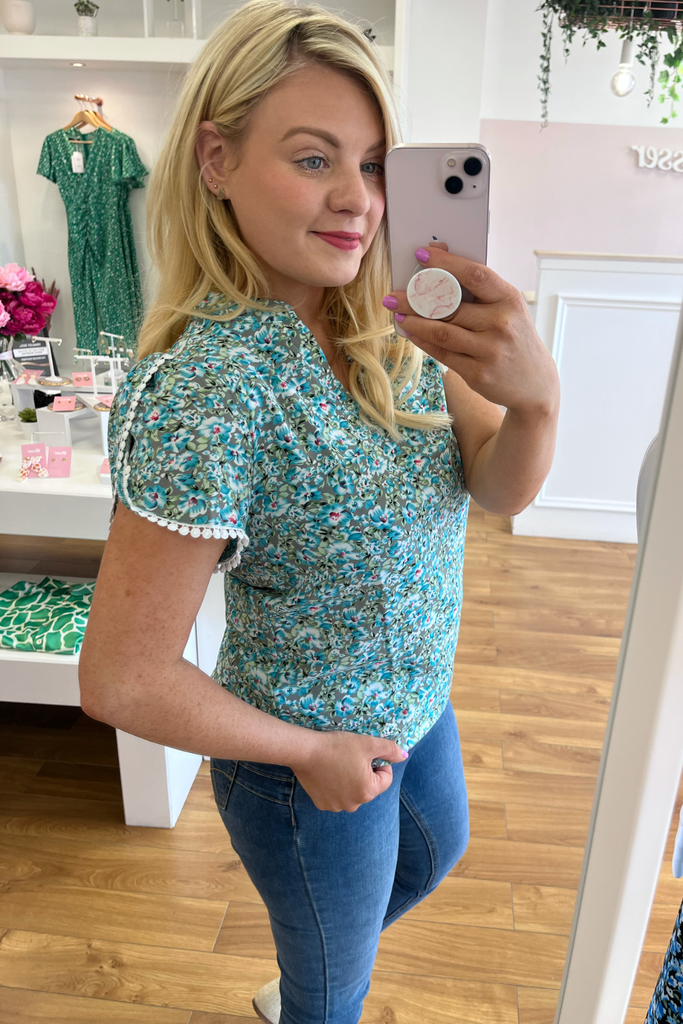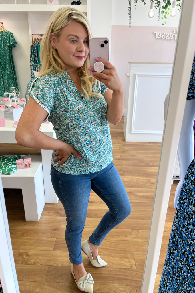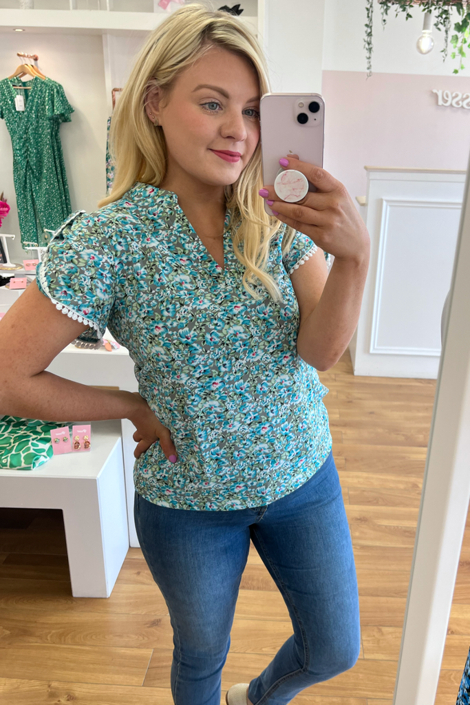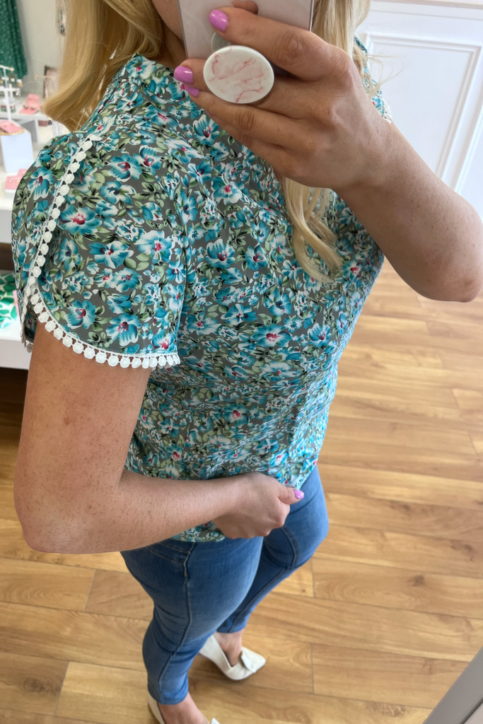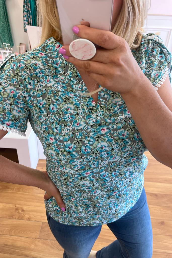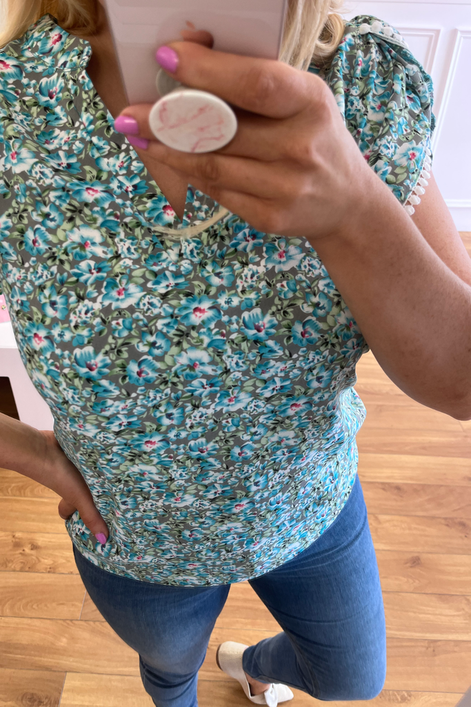 Ruby Teal Floral Blouse