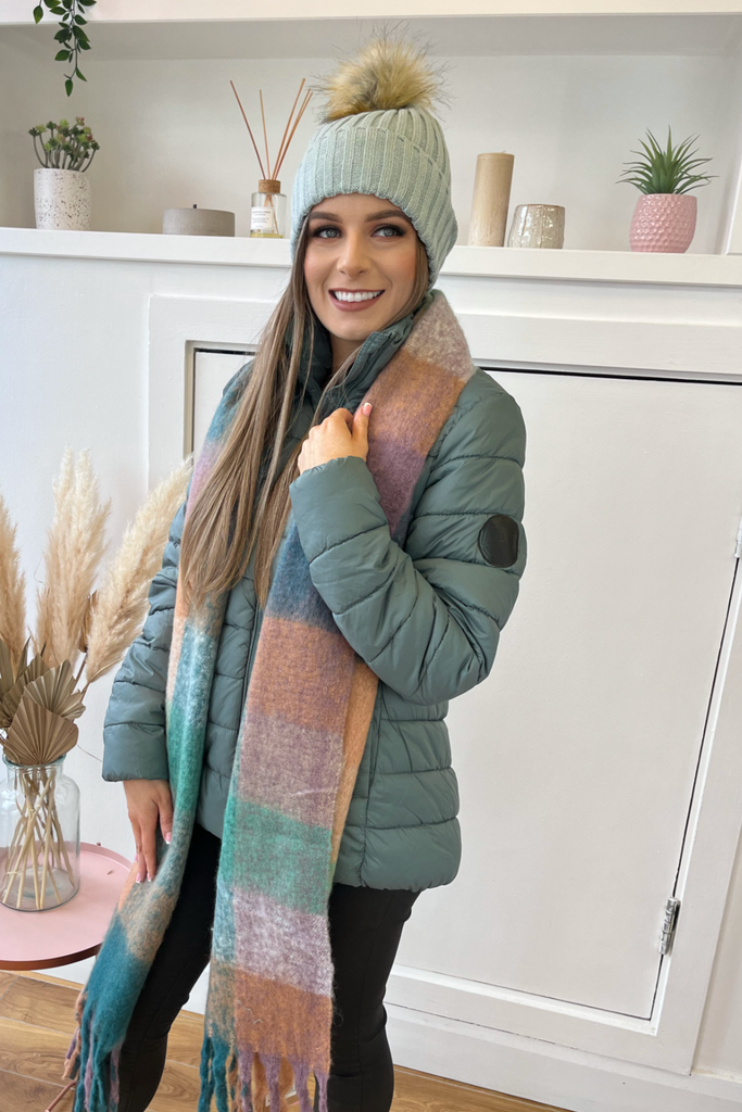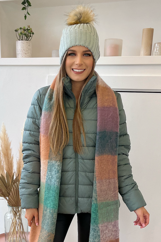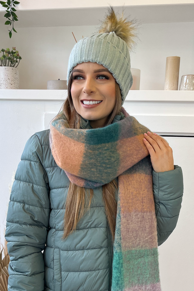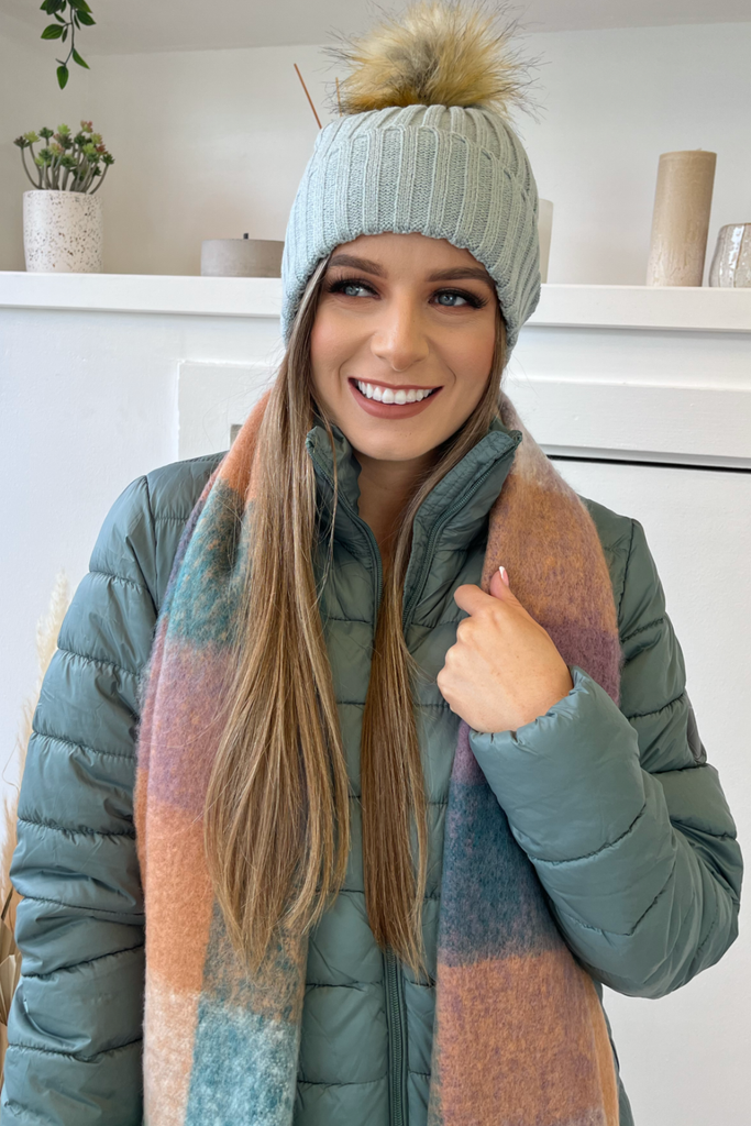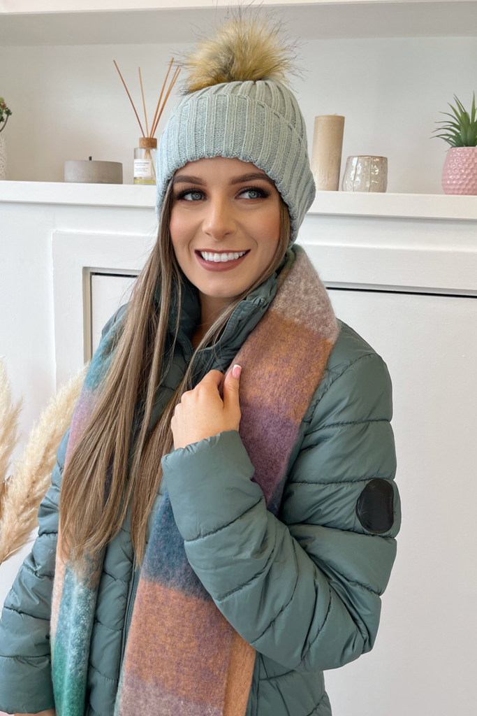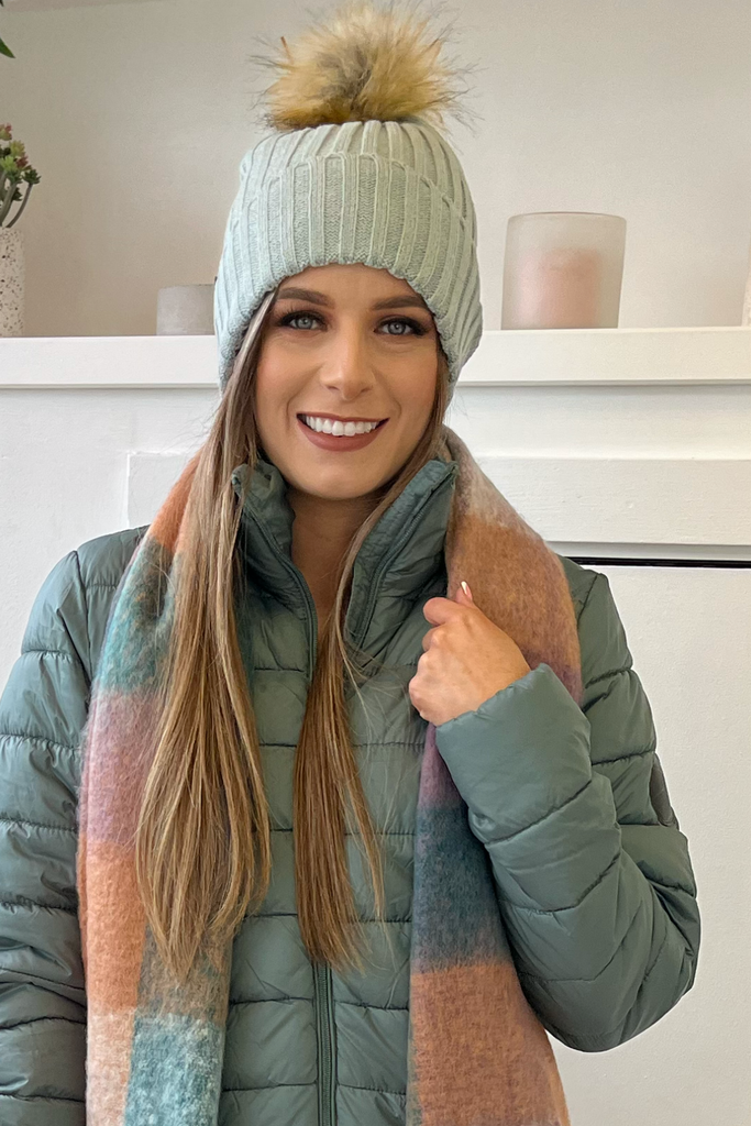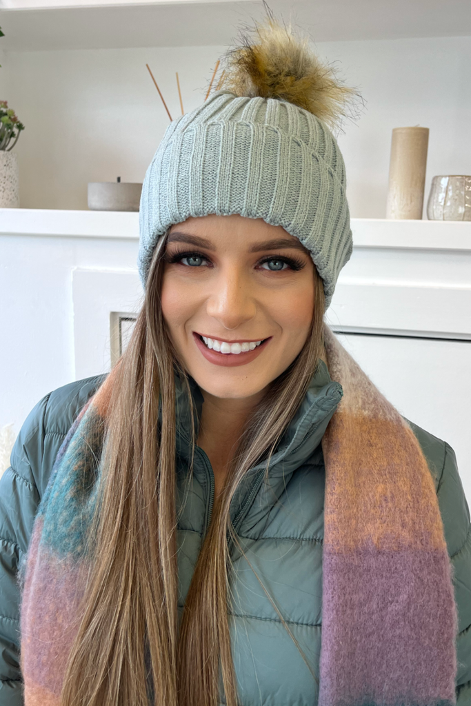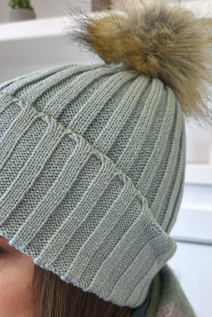 Ribbed bobble hat with turned up front, finished with a faux fur bobble. The perfect accessory to every outfit this Winter!