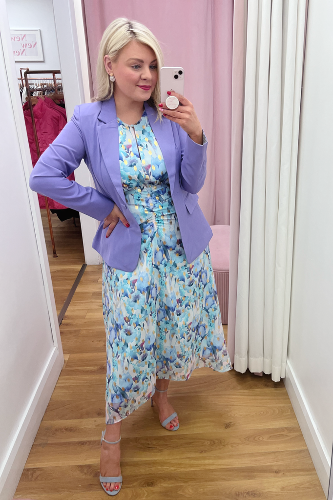 For sophisticated statement dressing, look no further than our scarlett blazer! This fun lilac single-breasted blazer is gently tailored in a fitted silhouette with lightly padded shoulders to accentuate your frame. For a sleek finish, we've added subtly peaked lapels, long sleeves and two flapped welt pockets. Also has a fun contrasting lining.