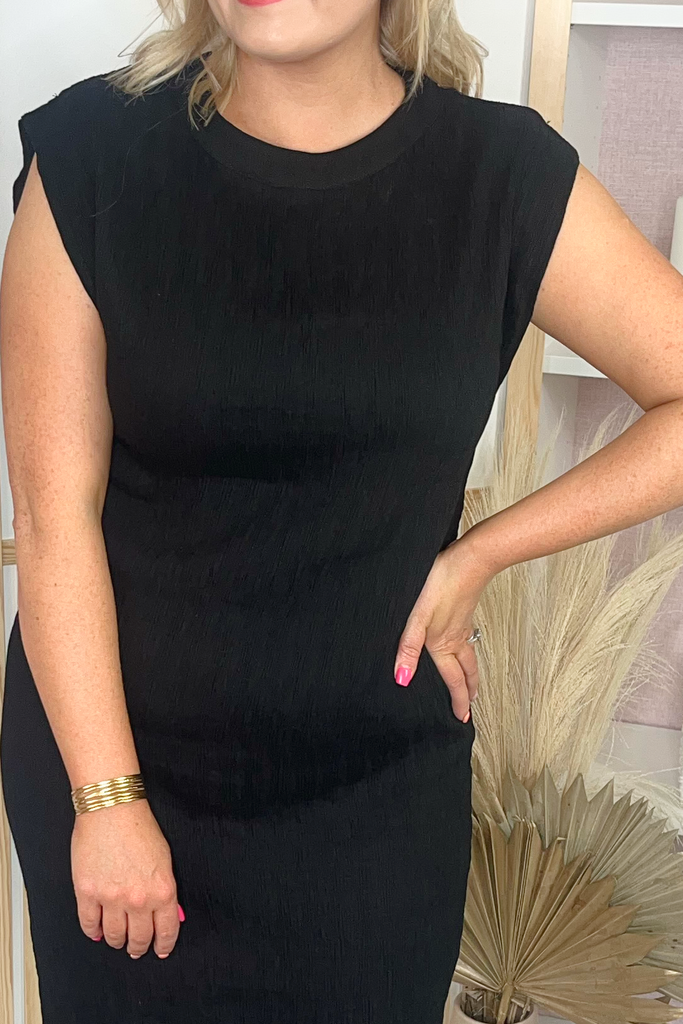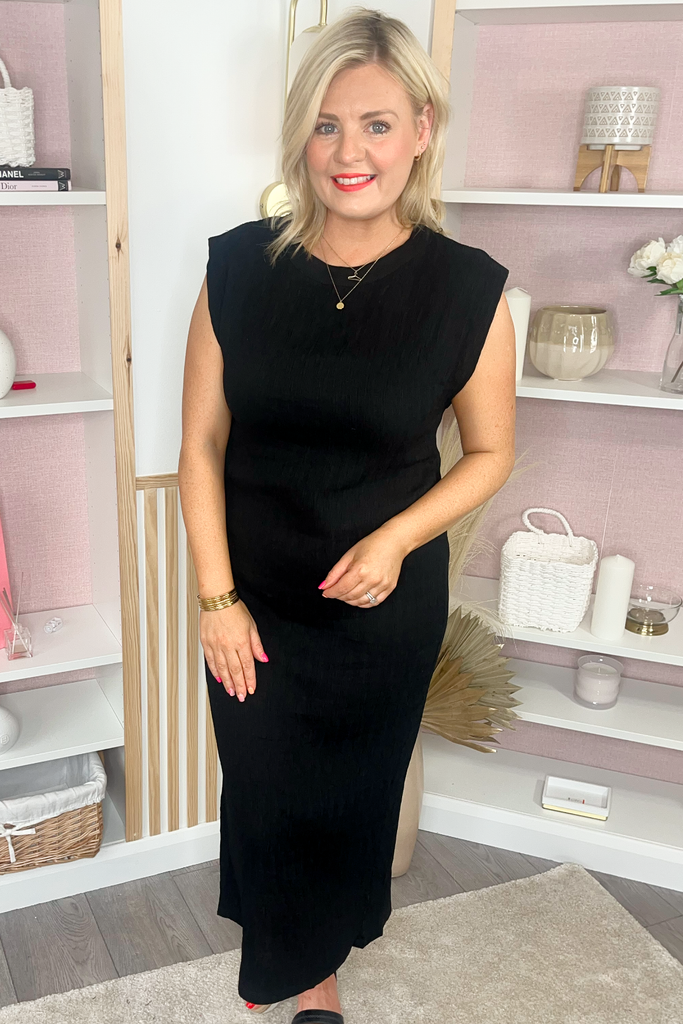 Maxi length textured sleeveless maxi dress with cap sleeve