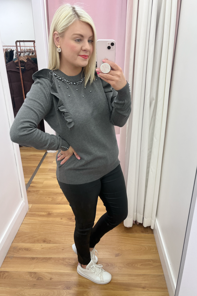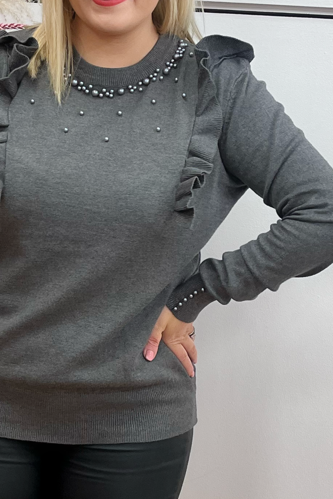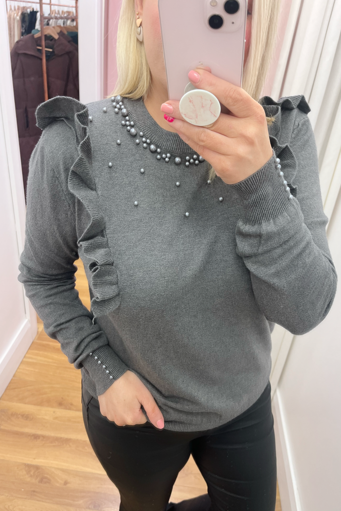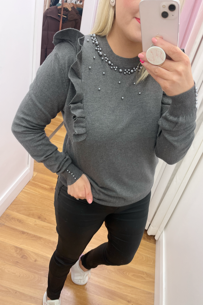 Sofia Pearl Beaded Jumper (Grey)