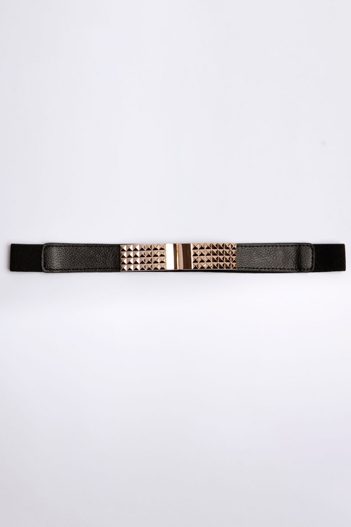 Everyone needs a simple black belt in their wardrobe. Our Susana belt has textured faux leather with gold detailing at the front and a stretchy elasticated design for comfort and to give a great shape on the waist.