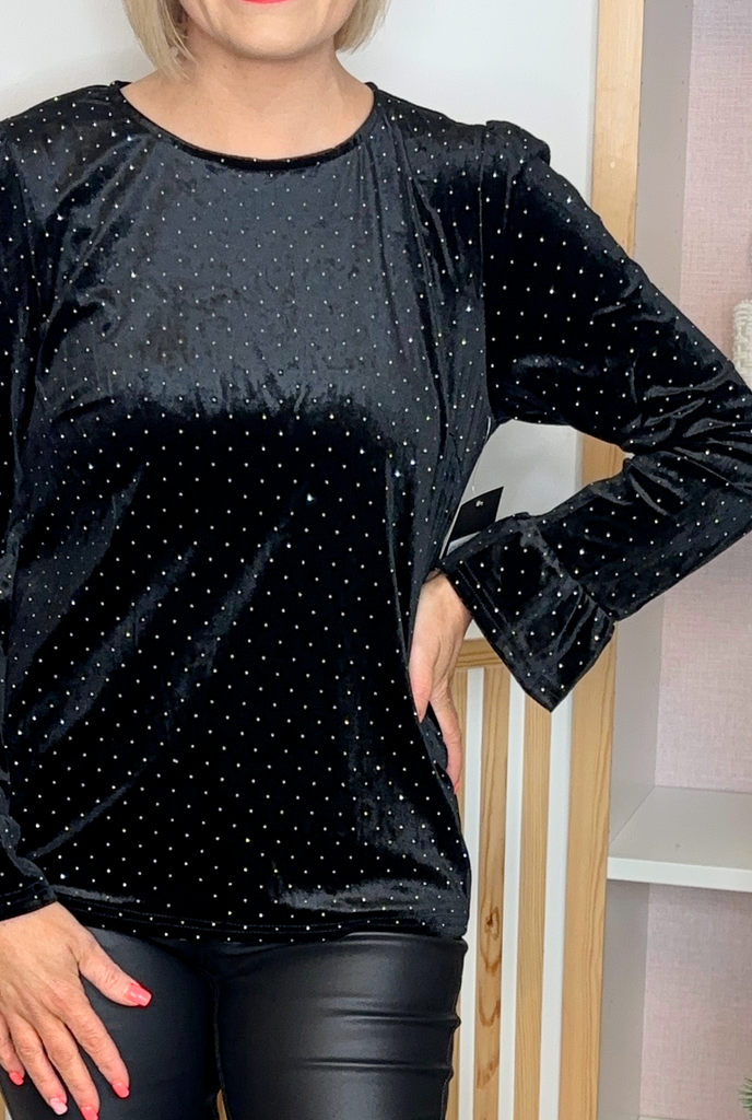 Velvet top with full sleeve with peplum cuff. This style is lined