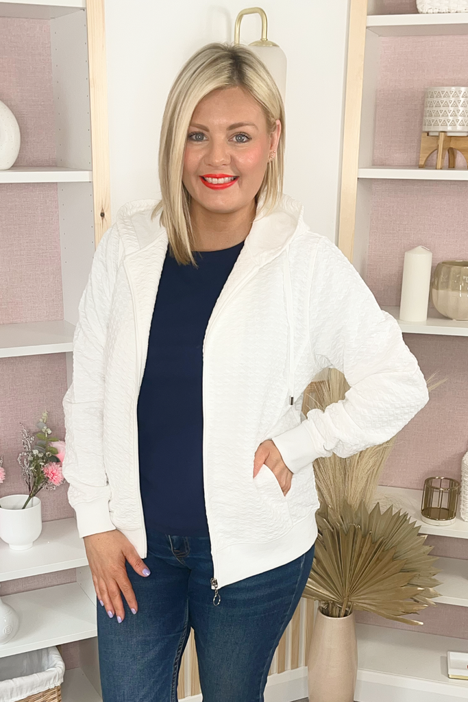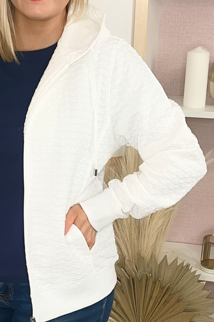 White Textured Quilted Jacket