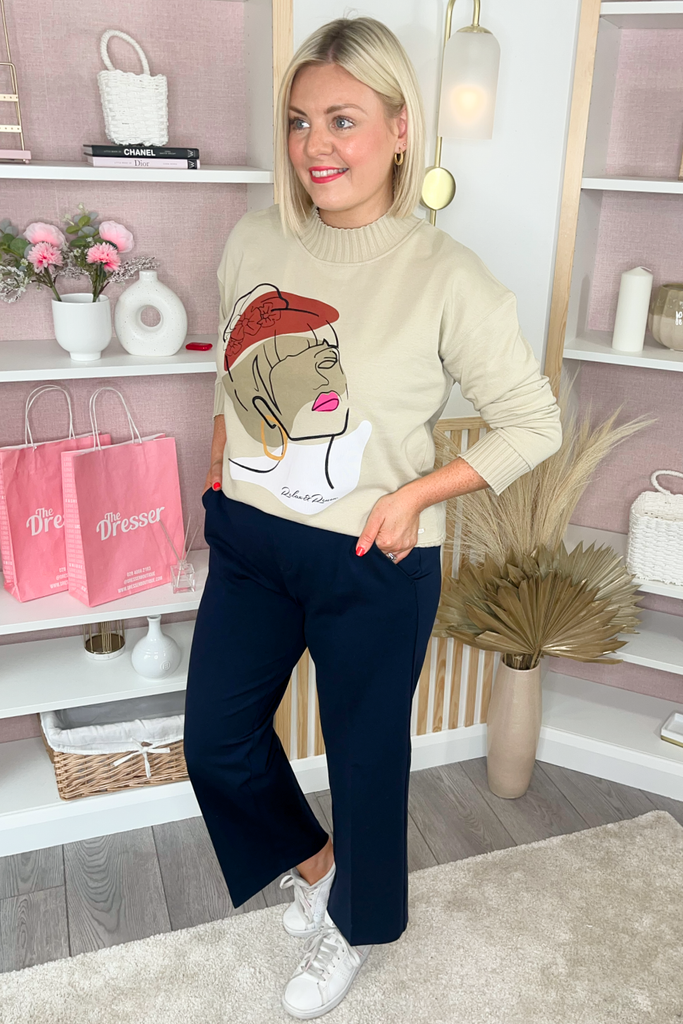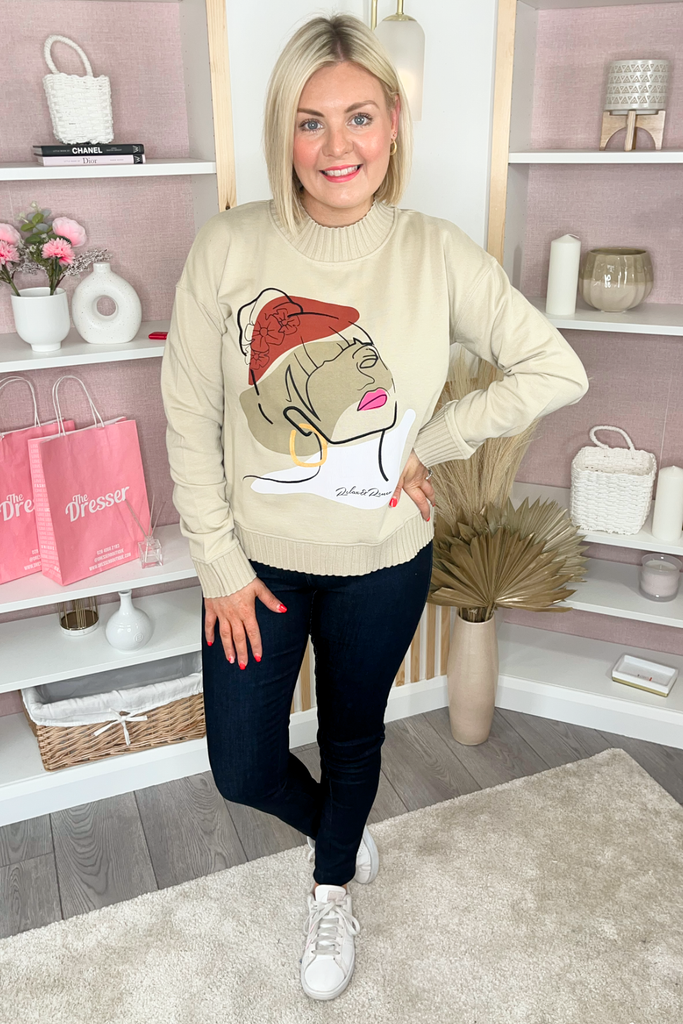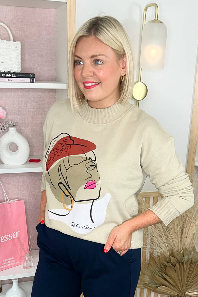 Neutral printed sweatshirt with a pop of colour. With slightly raised ribbed neckline and ribbed cuffs