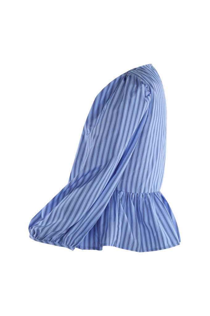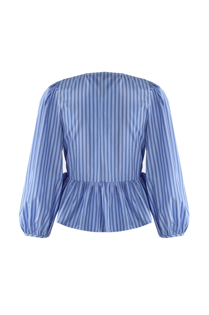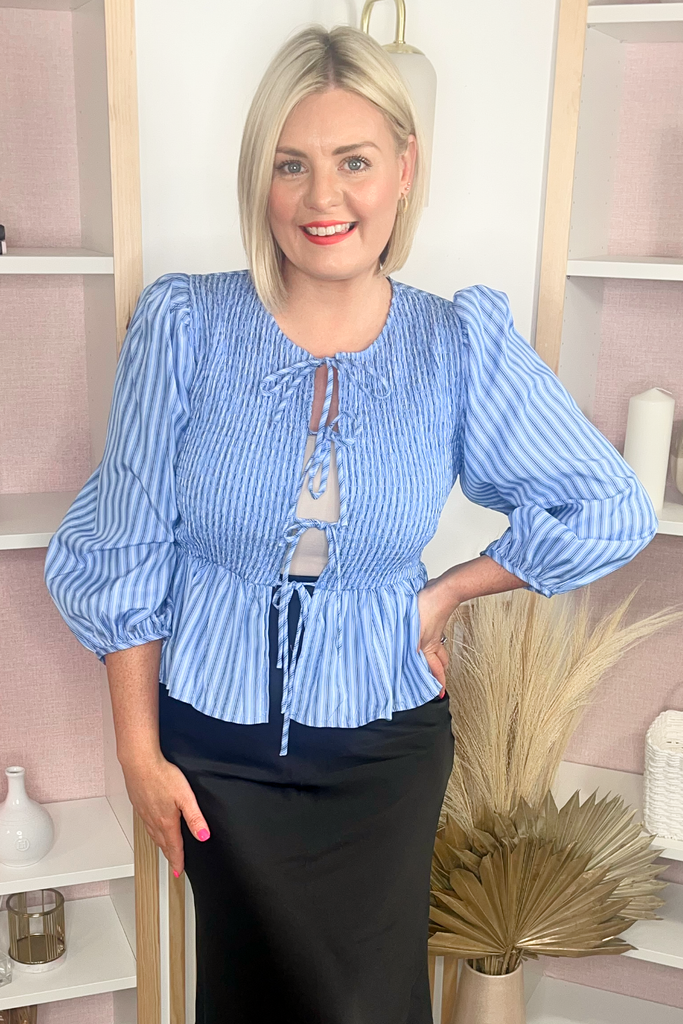 Striped bow front blouse with peplum waist