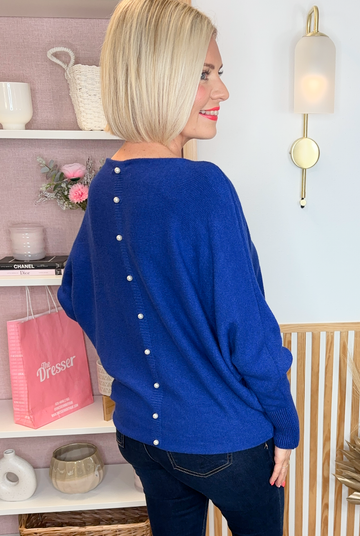 A lightweight batwing knit with the softest feel. Features a round neckline, full length batwing sleeves and relaxed bodice with stunning pearl detail at the back.