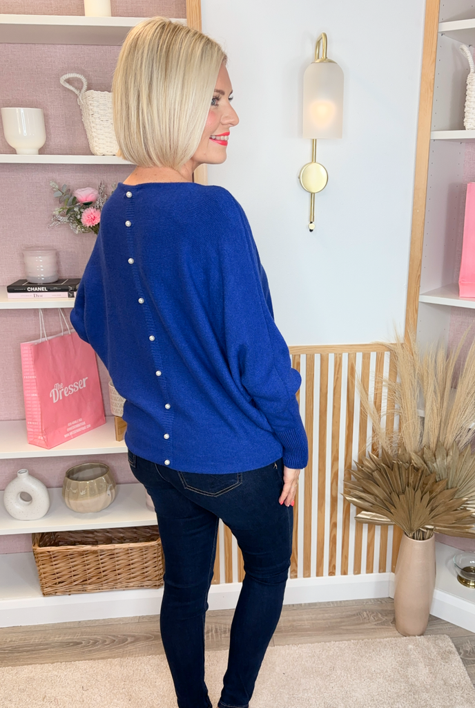 A lightweight batwing knit with the softest feel. Features a round neckline, full length batwing sleeves and relaxed bodice with stunning pearl detail at the back.