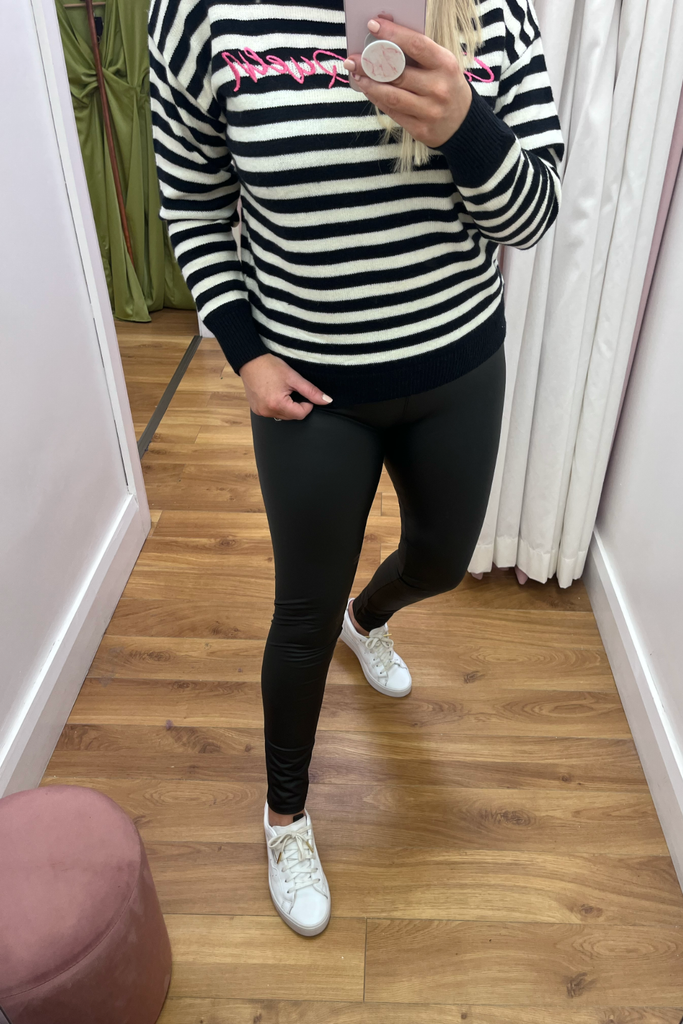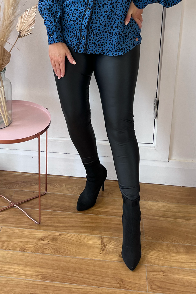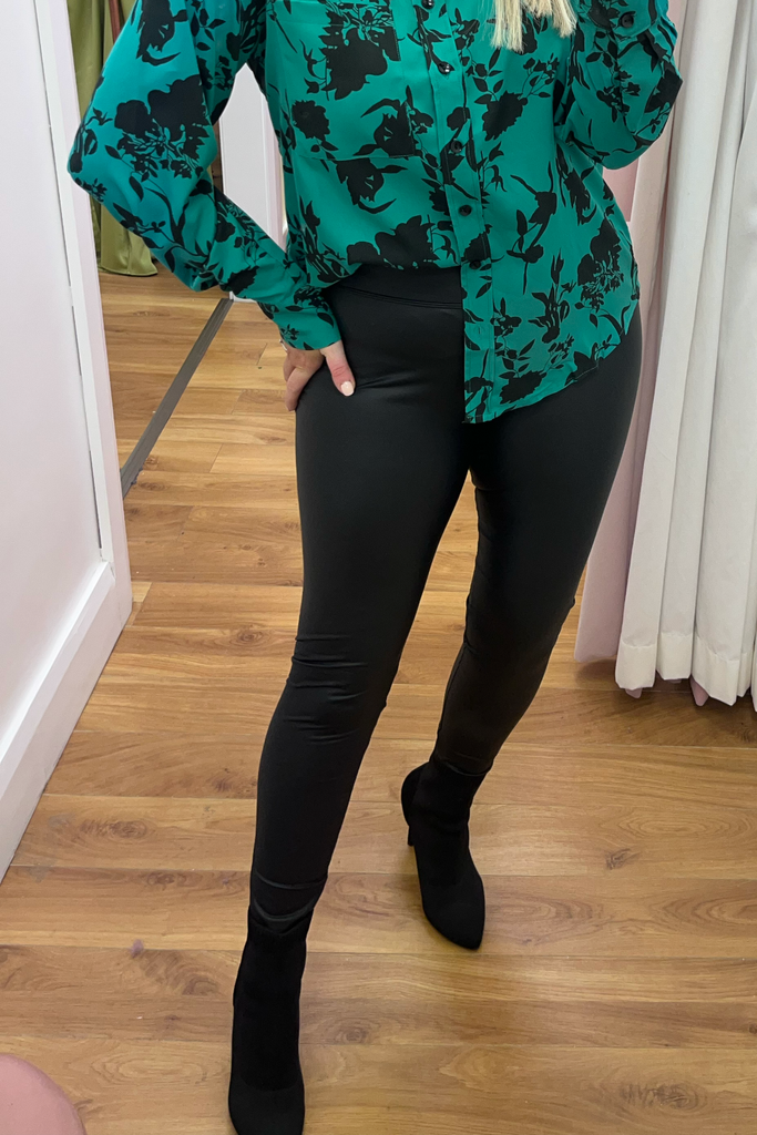 Faux leather high waisted leggings with plain leg and fleece lining inside for amazing comfort. These figure hugging leggings are super comfortable to wear and a wardrobe must have this season! Perfect for dressing up or down