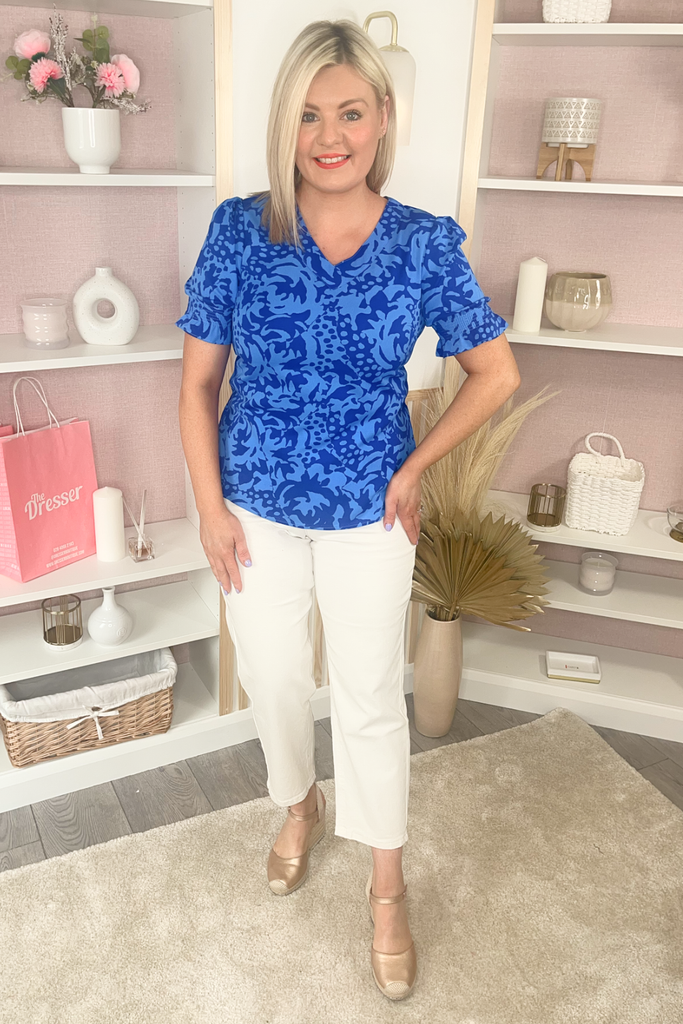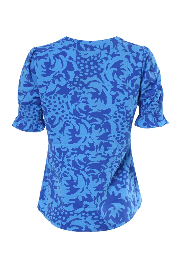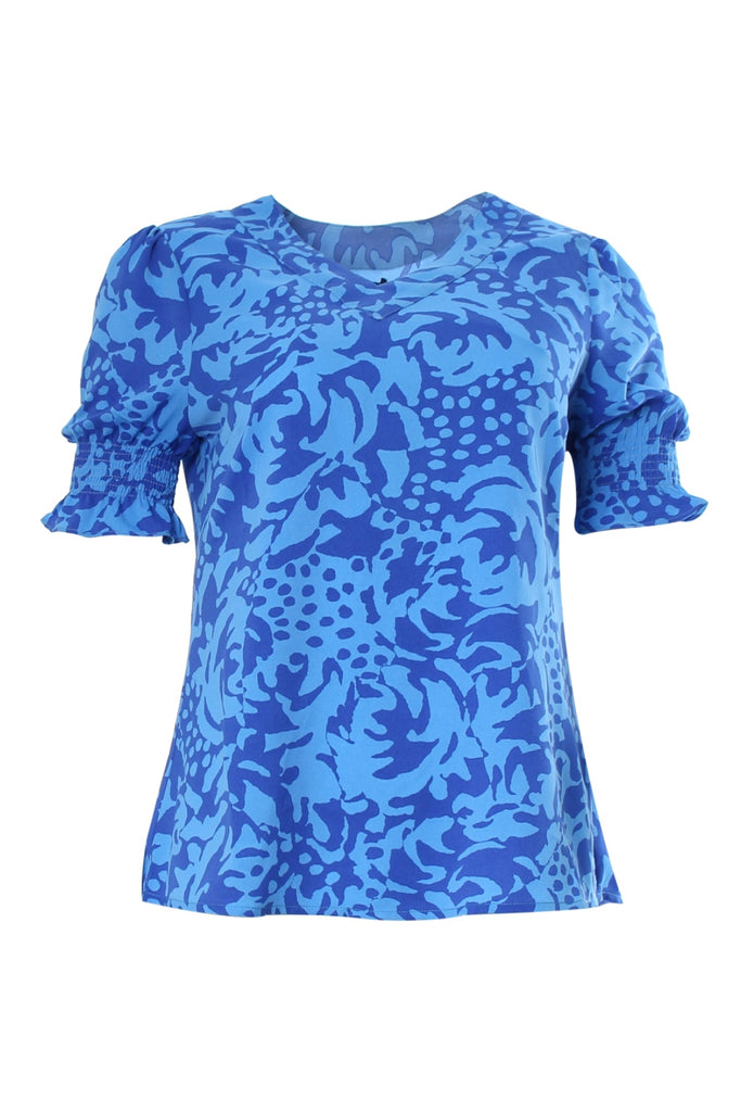 Vibrant printed blouse with V-neckline and half sleeve with frilled cuff