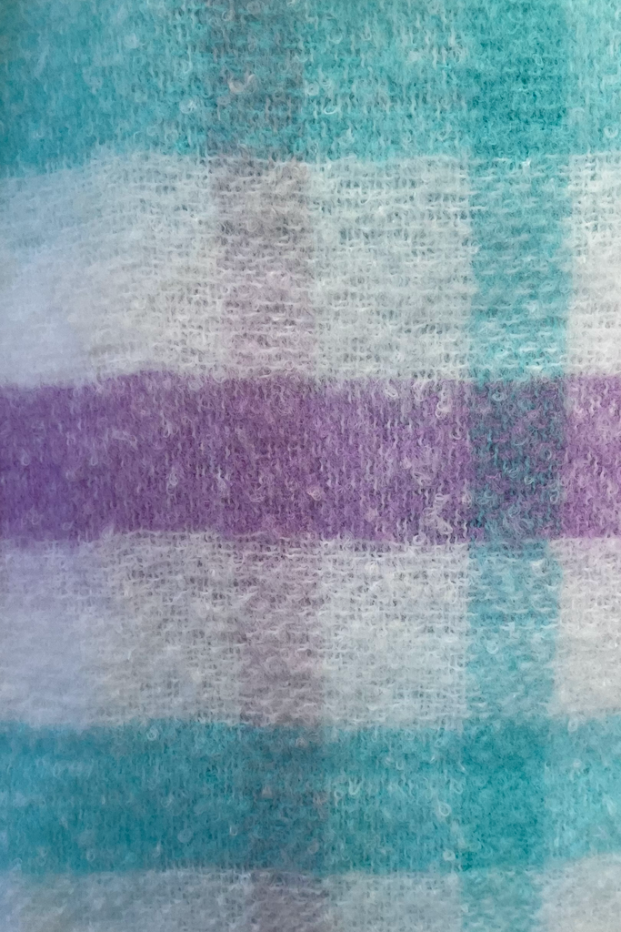 Fluffy and soft large rectangular scarf featuring shades of Ivory with lines of bright Mint and vibrant Lavender