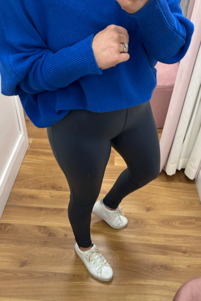 Faux leather high waisted leggings with plain leg and fleece lining inside for amazing comfort. These figure hugging leggings are super comfortable to wear and a wardrobe must have this season! Perfect for dressing up or down