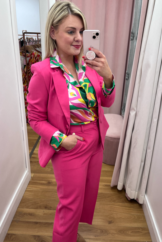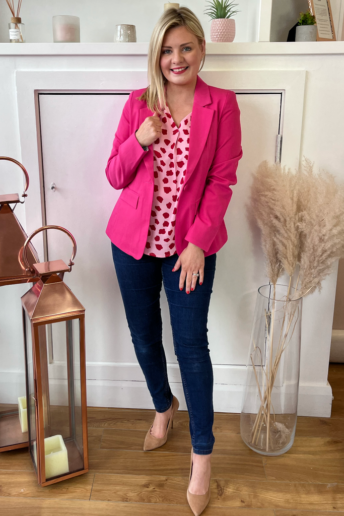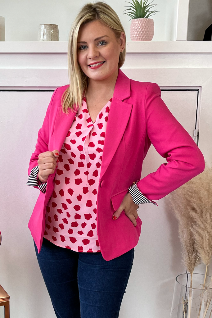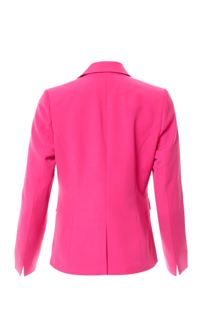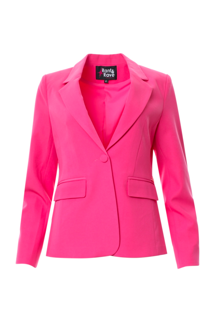 For sophisticated statement dressing, look no further than our scarlett blazer! This vibrant-pink single-breasted blazer is gently tailored in a fitted silhouette with lightly padded shoulders to accentuate your frame. For a sleek finish, we've added subtly peaked lapels, long sleeves and two flapped welt pockets. Also has a fun contrasting lining.