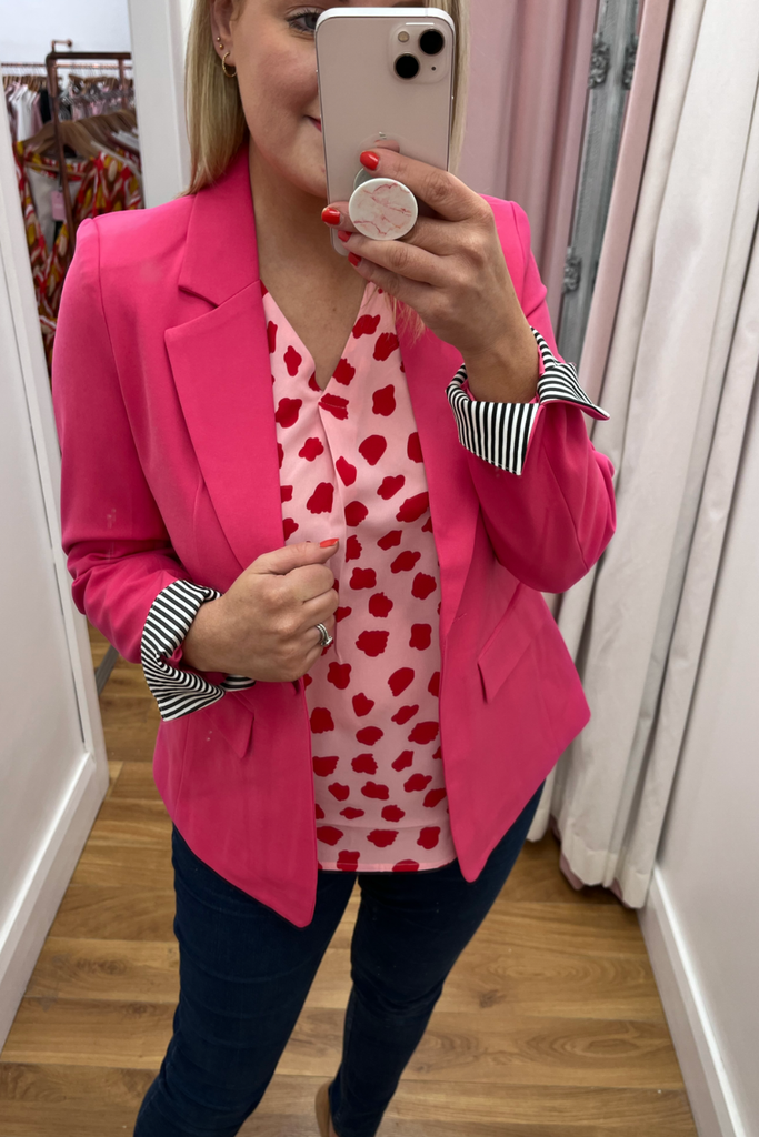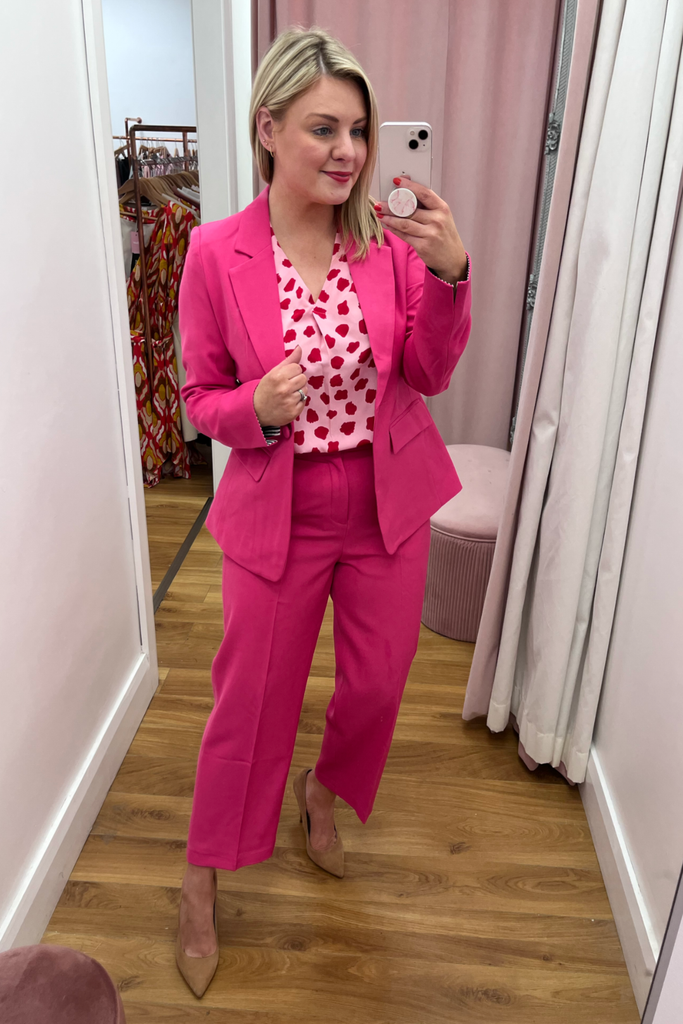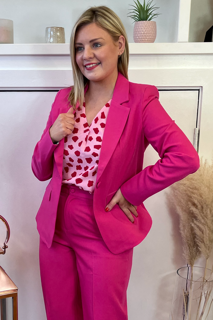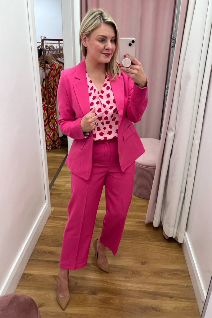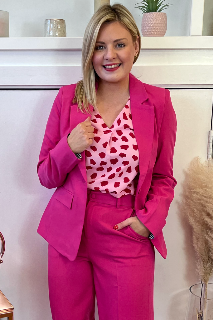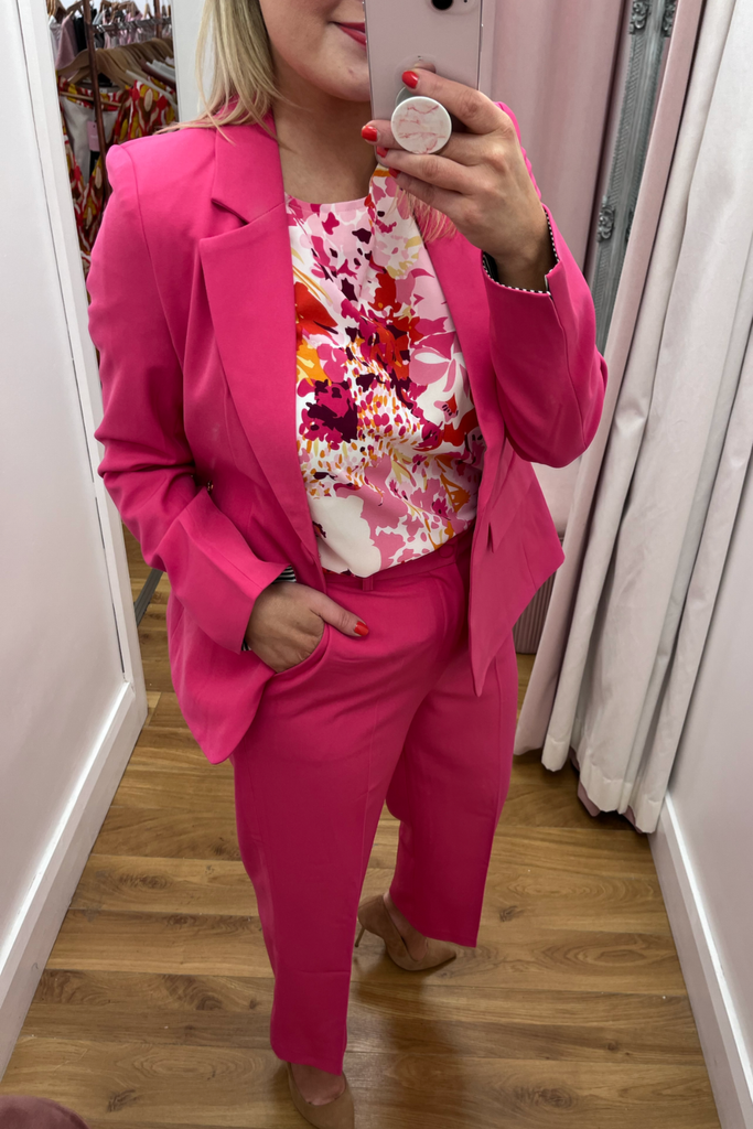 For sophisticated statement dressing, look no further than our scarlett blazer! This vibrant-pink single-breasted blazer is gently tailored in a fitted silhouette with lightly padded shoulders to accentuate your frame. For a sleek finish, we've added subtly peaked lapels, long sleeves and two flapped welt pockets. Also has a fun contrasting lining.
