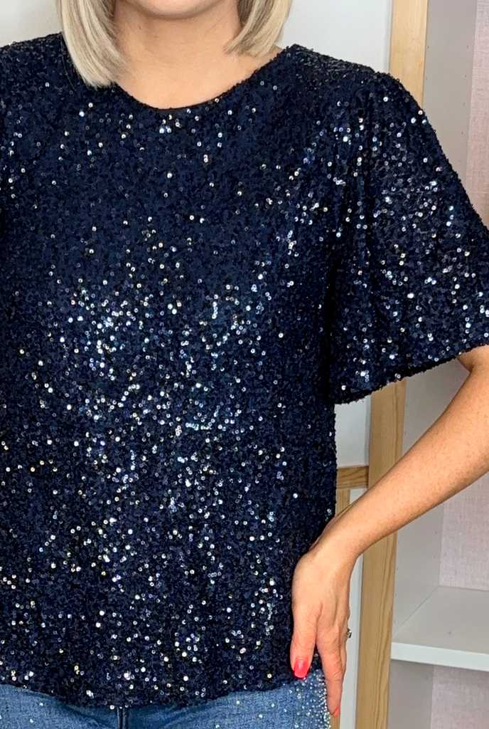 Round neck sequin blouse with gorgeous flutter half sleeve