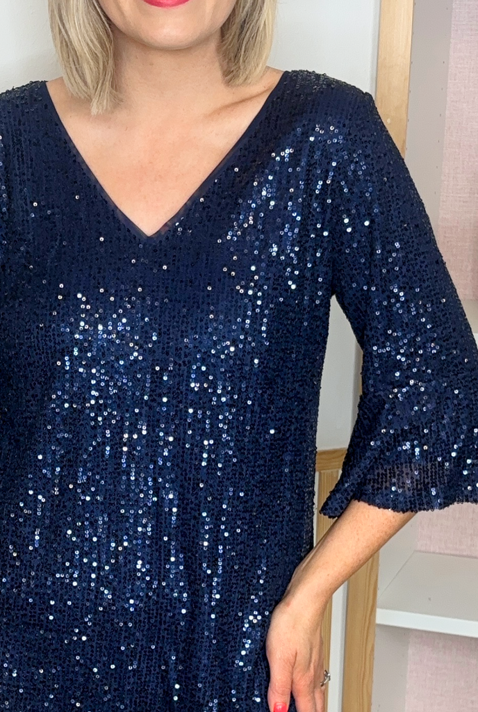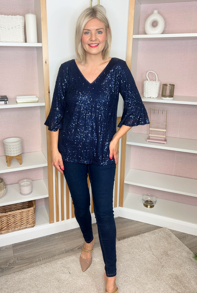 V-neck Sequin Blouse (Navy)