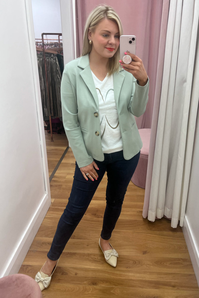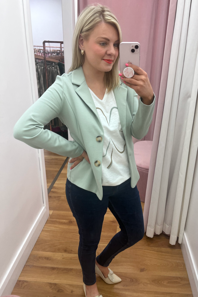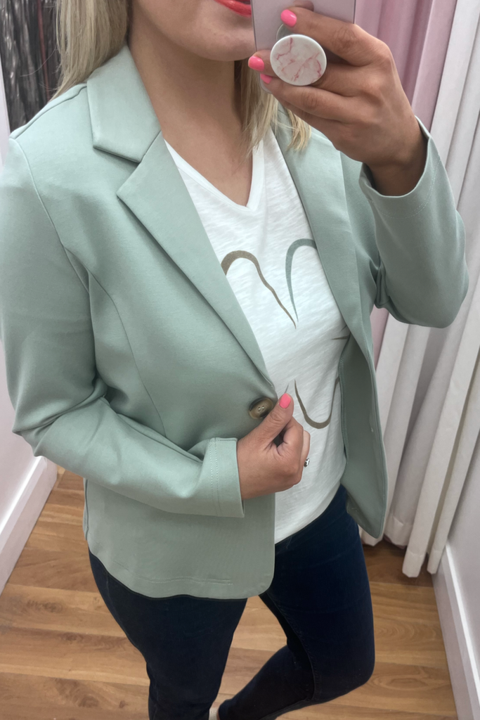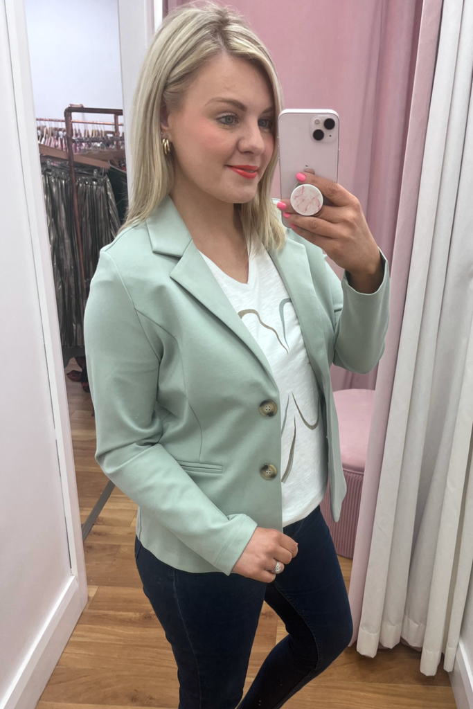 In a soft and quilted jersey material with two single buttons. This style has some stretch.