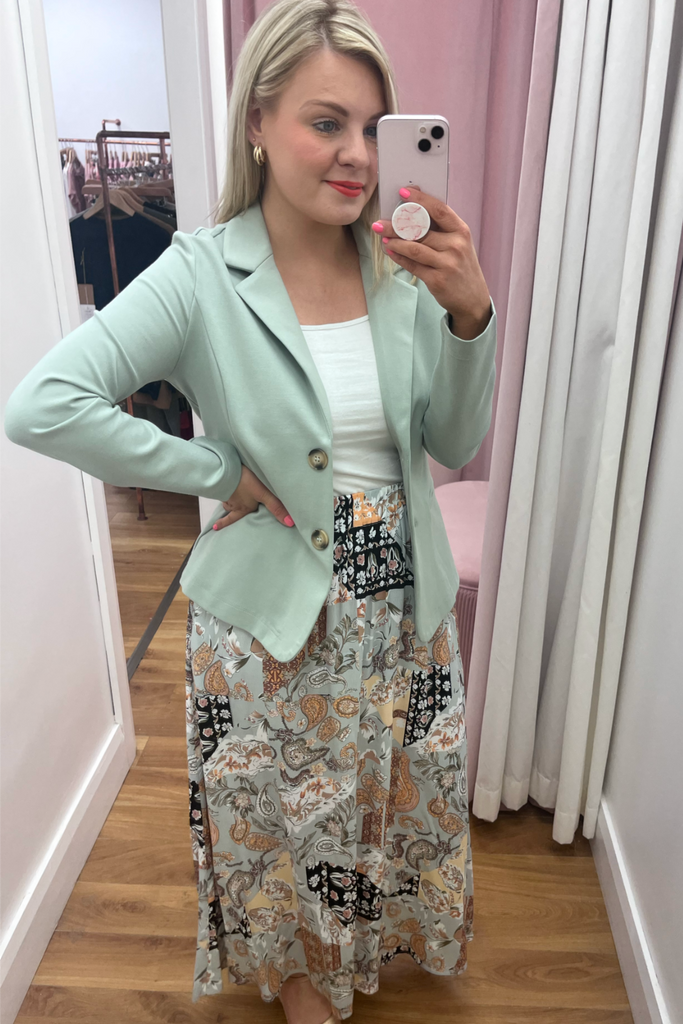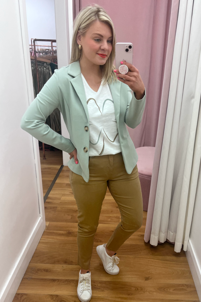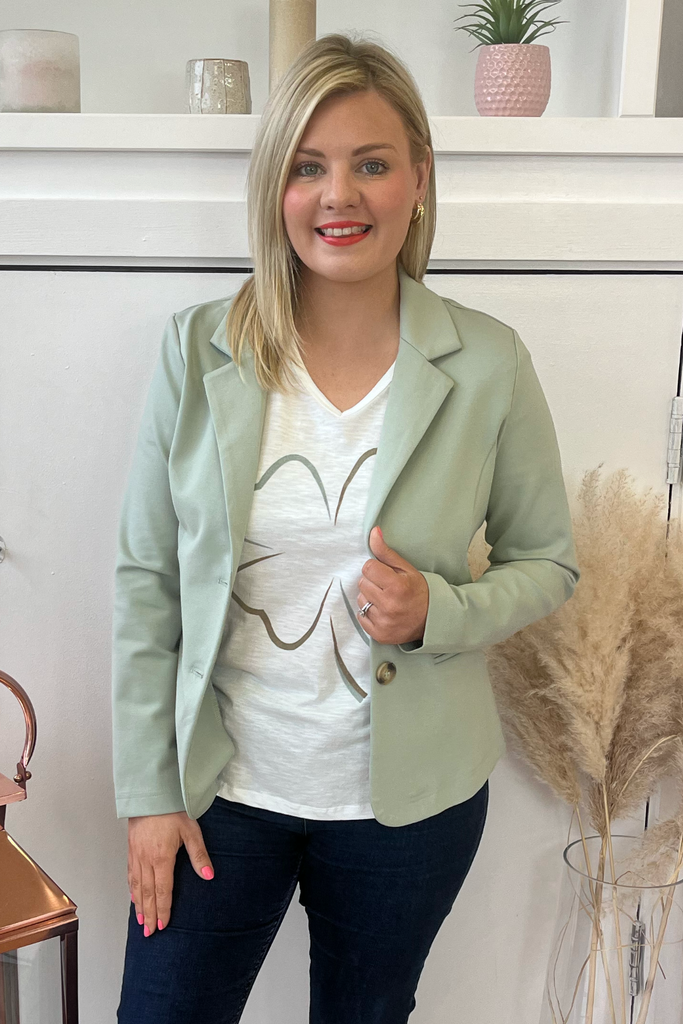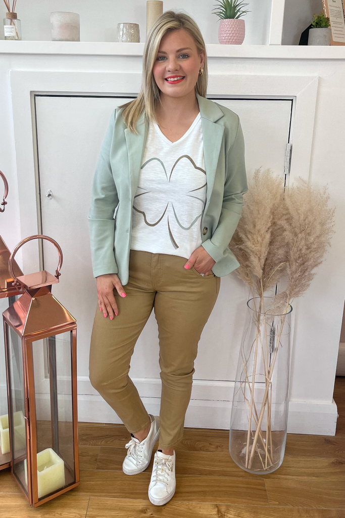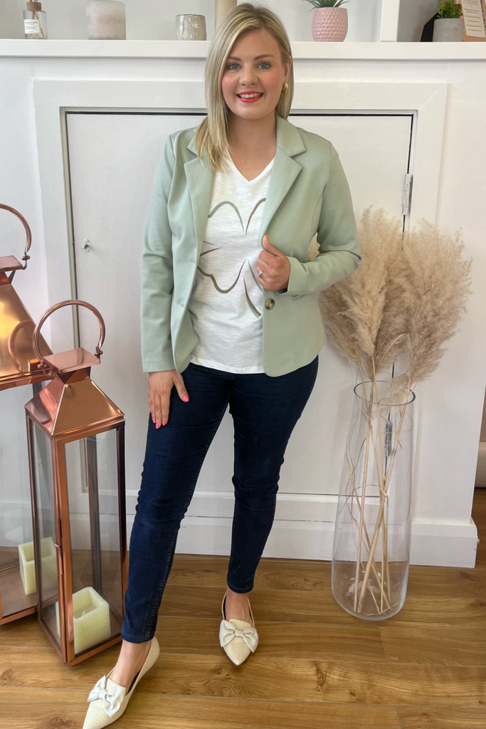 In a soft and quilted jersey material with two single buttons. This style has some stretch.