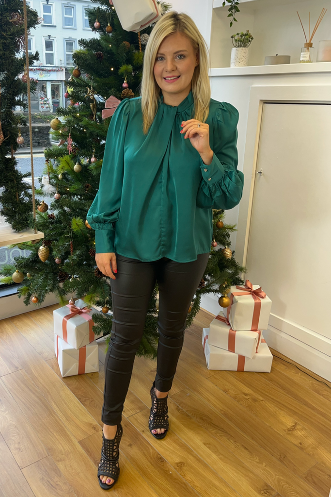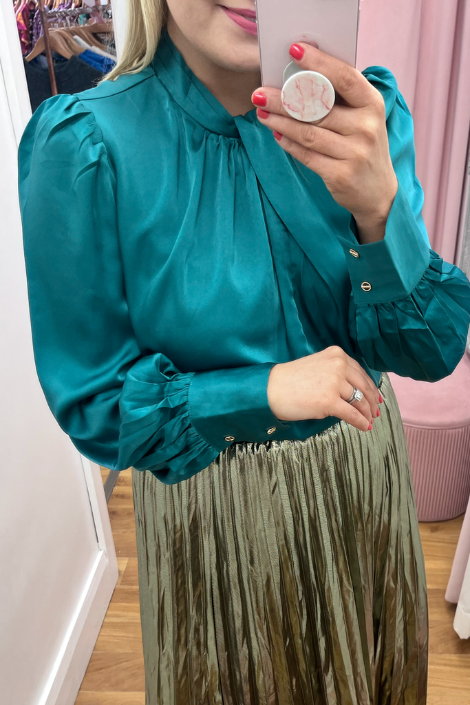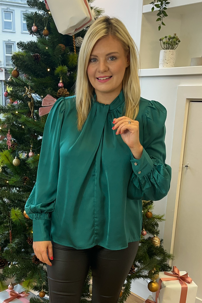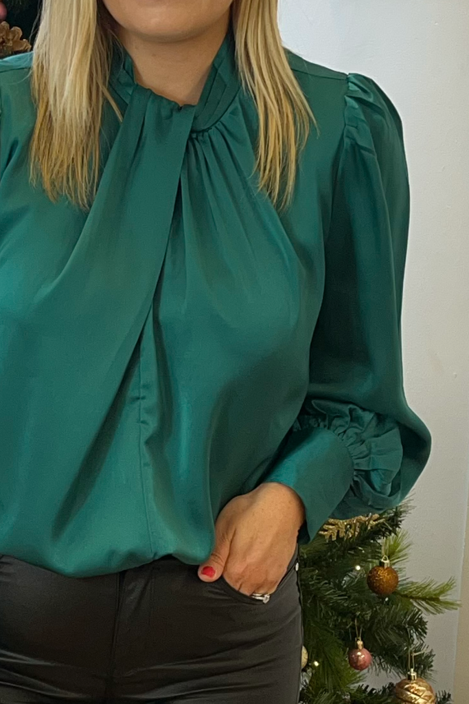 Noelle Green Satin Blouse