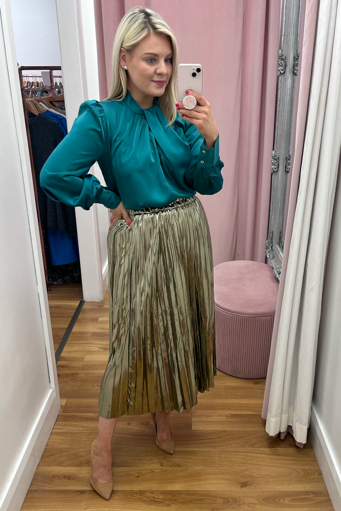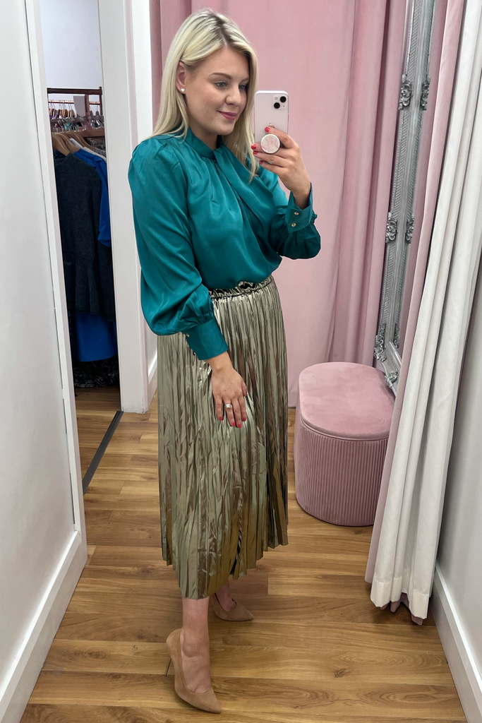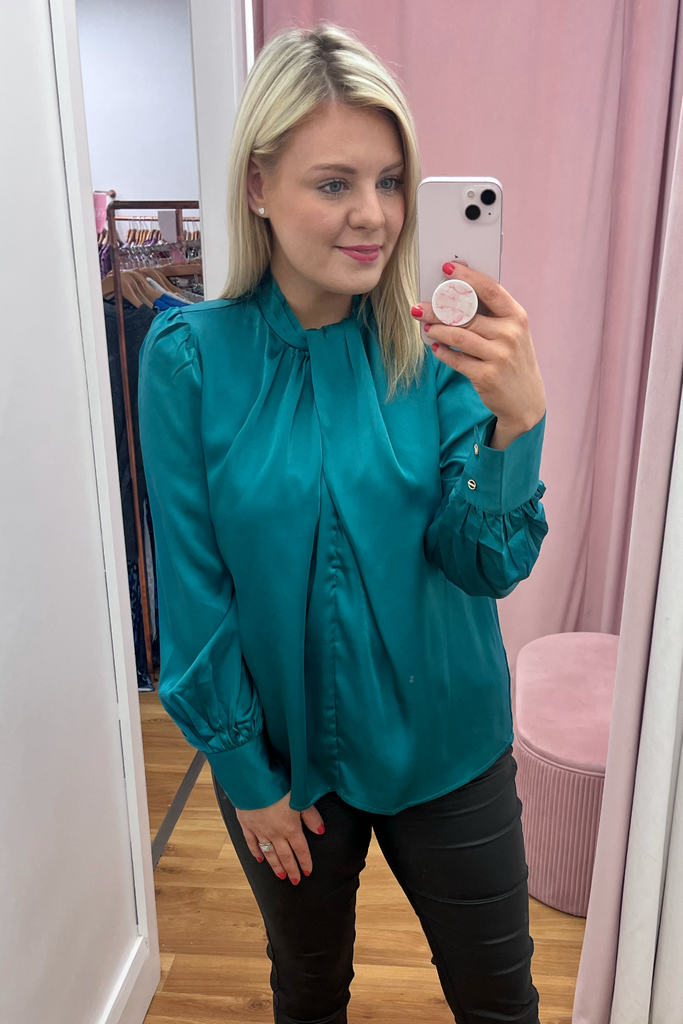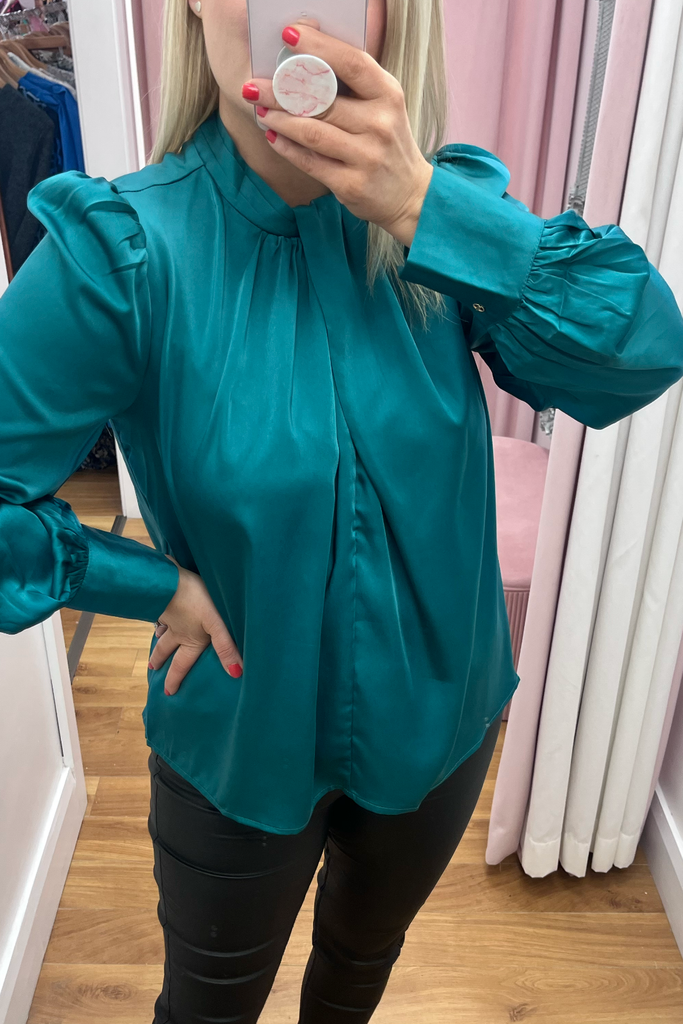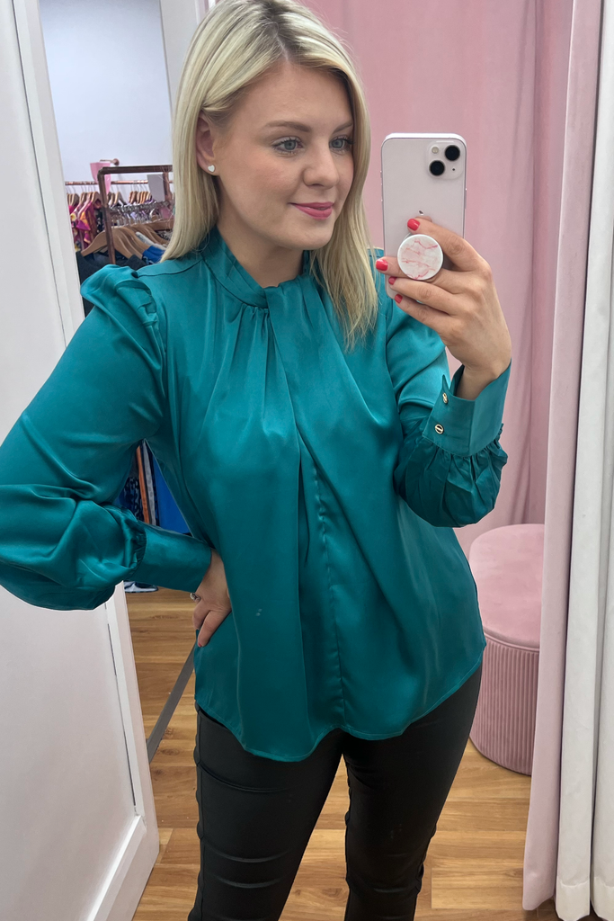 Noelle Green Satin Blouse
