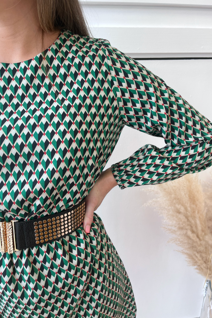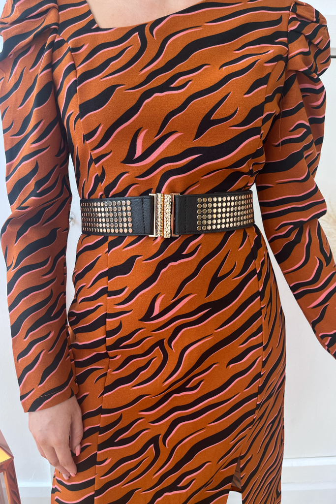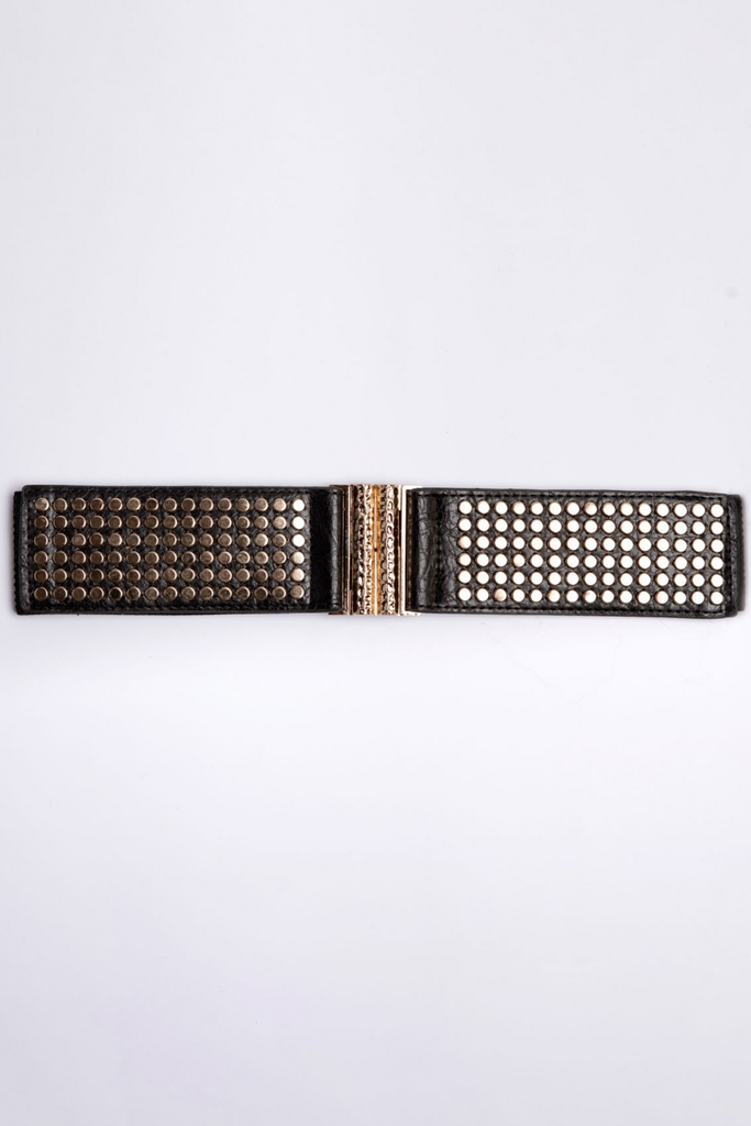 Stunning black belt with gold metallic detailing throughout. It has an elasticated waist for comfort and to give a great shape on the waist.