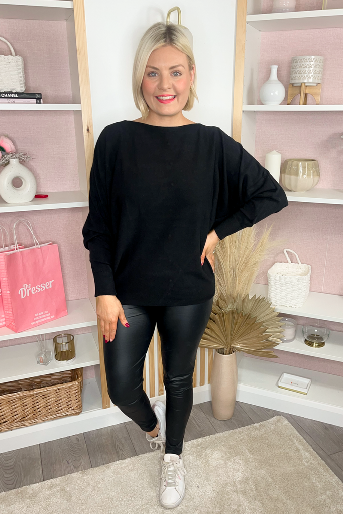 A lightweight batwing knit with the softest feel. Features a round neckline, full length batwing sleeves and relaxed bodice with stunning pearl detail at the back.