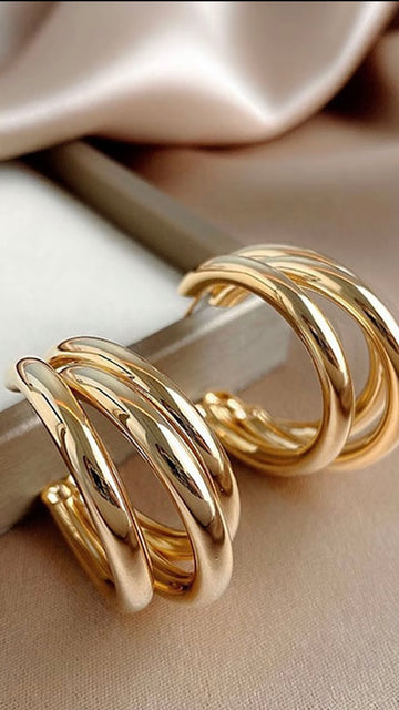 A fun alternative to the classic huggie! In a large triple layer. This style is perfect for both everyday and evening!