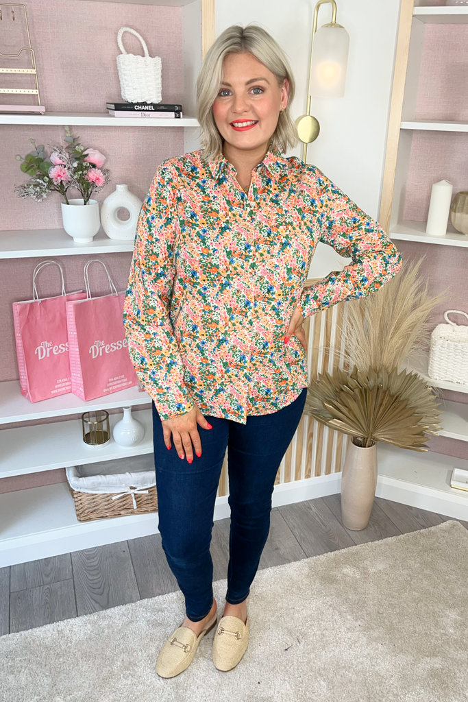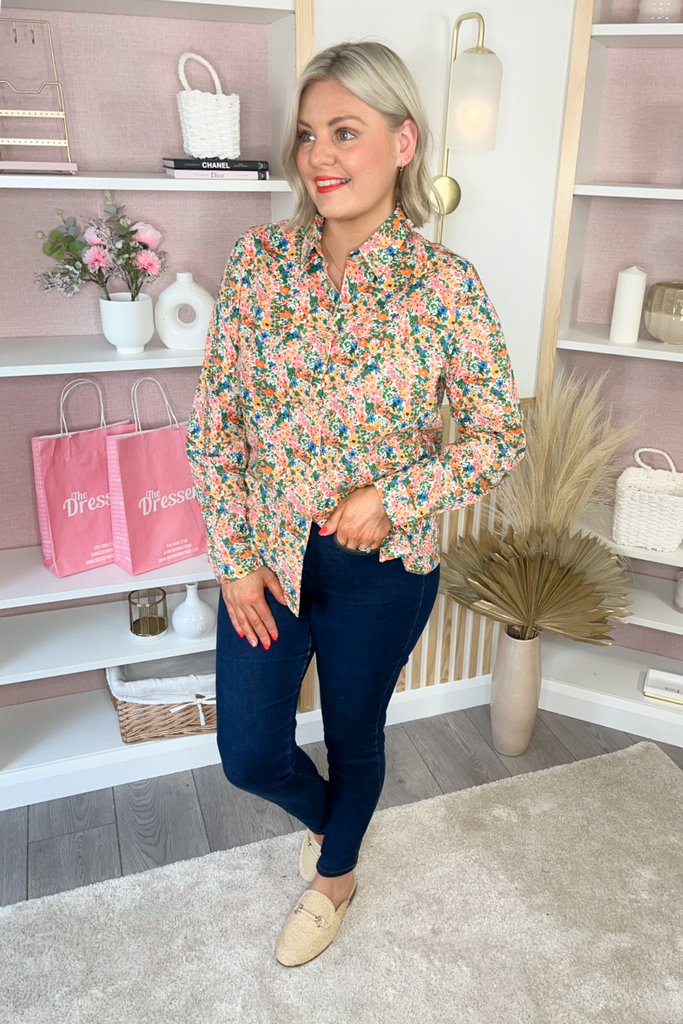 Colourful buttoned blouse in a floral vibrant mix of colours