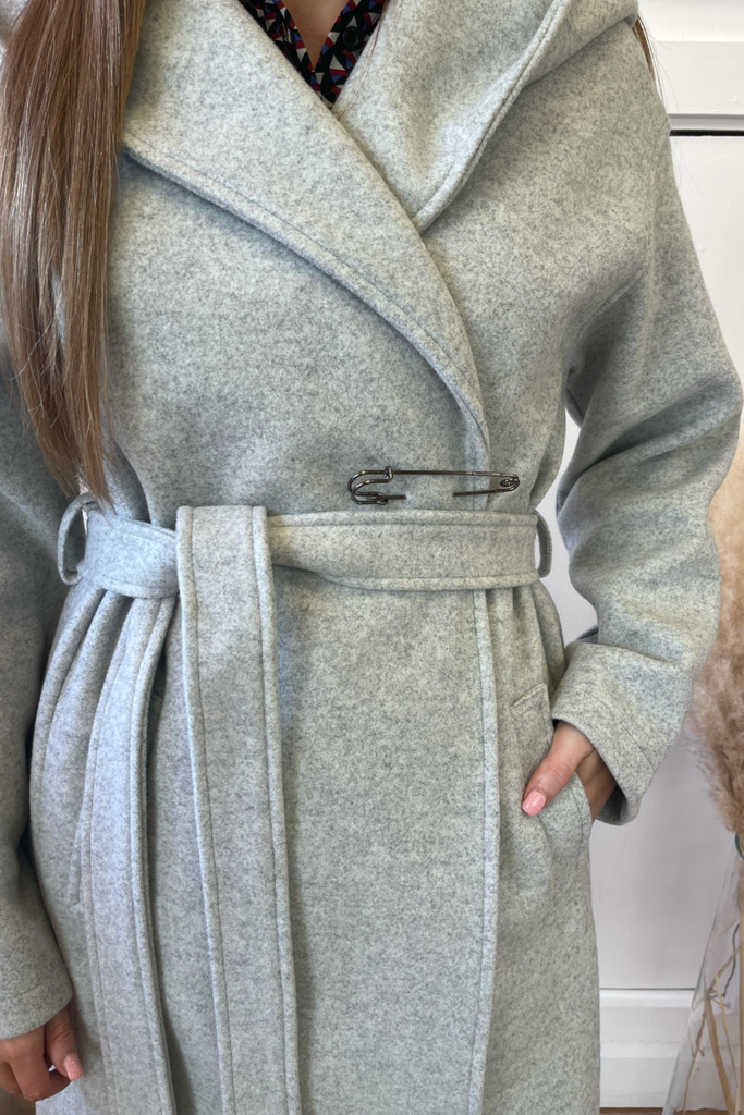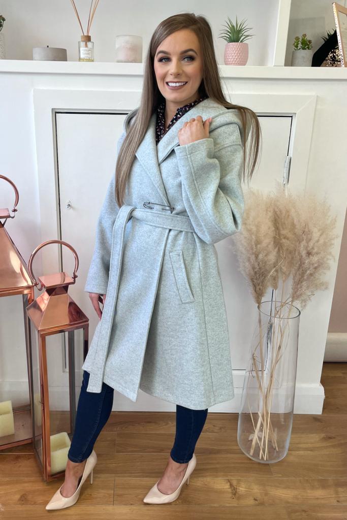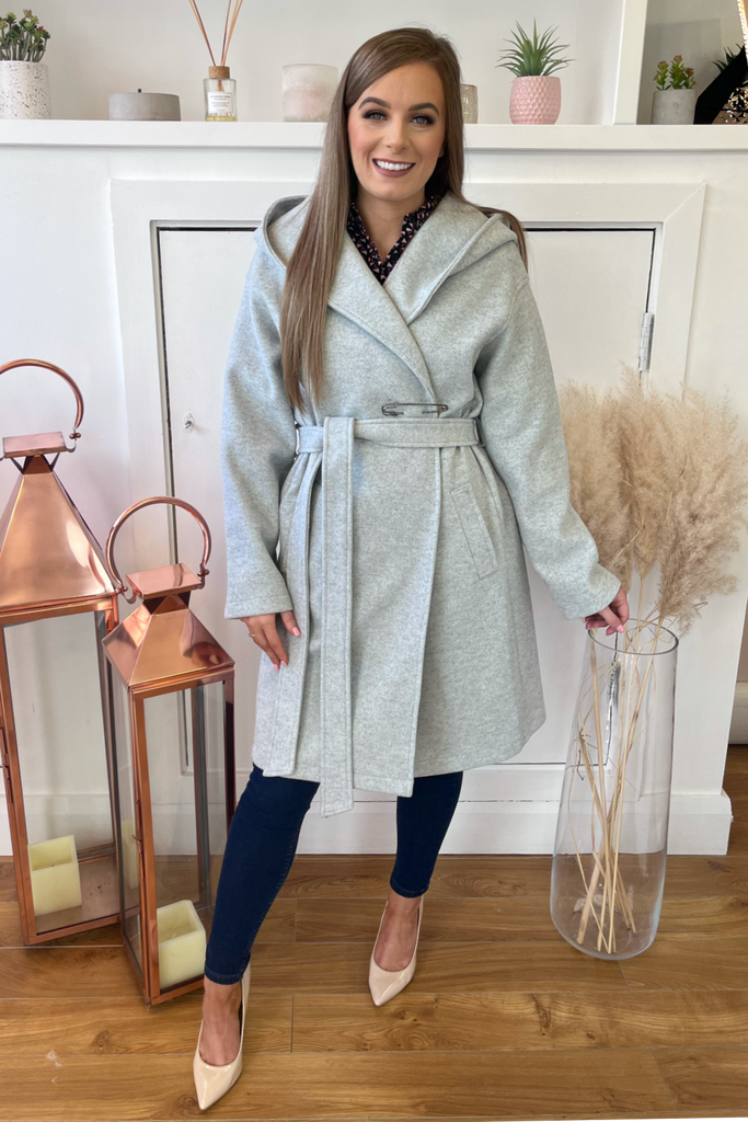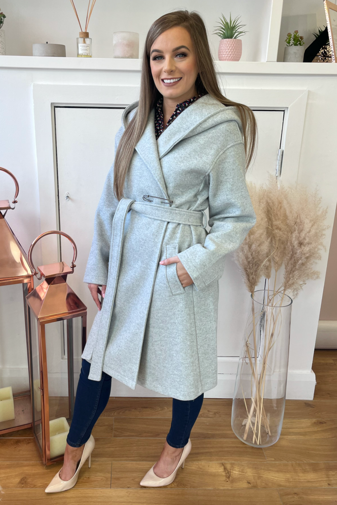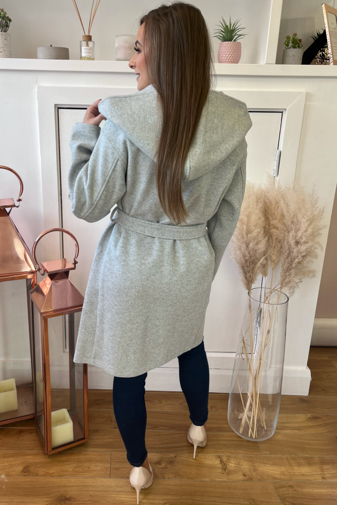 Grey Wrap Hooded Coat